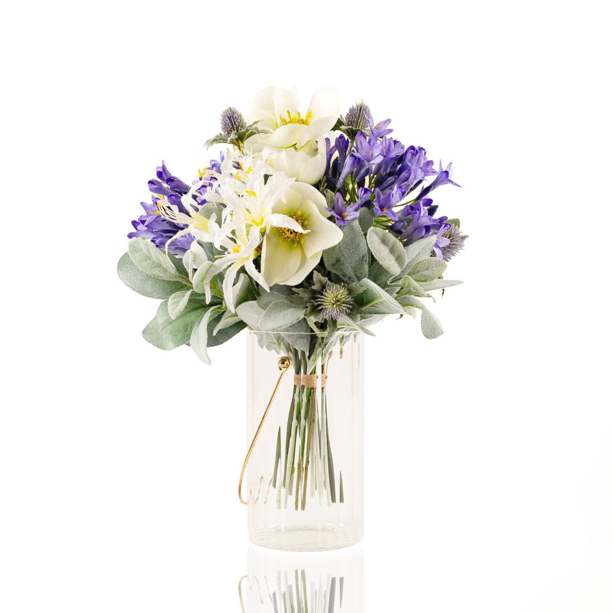 Künstlicher Winter Strauß ALANA, weiß-lila, 35cm, Ø30cm