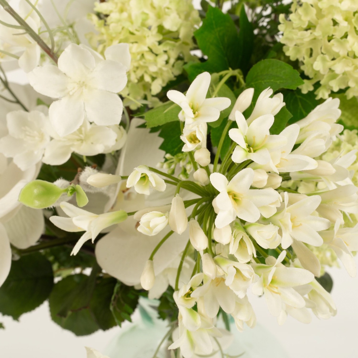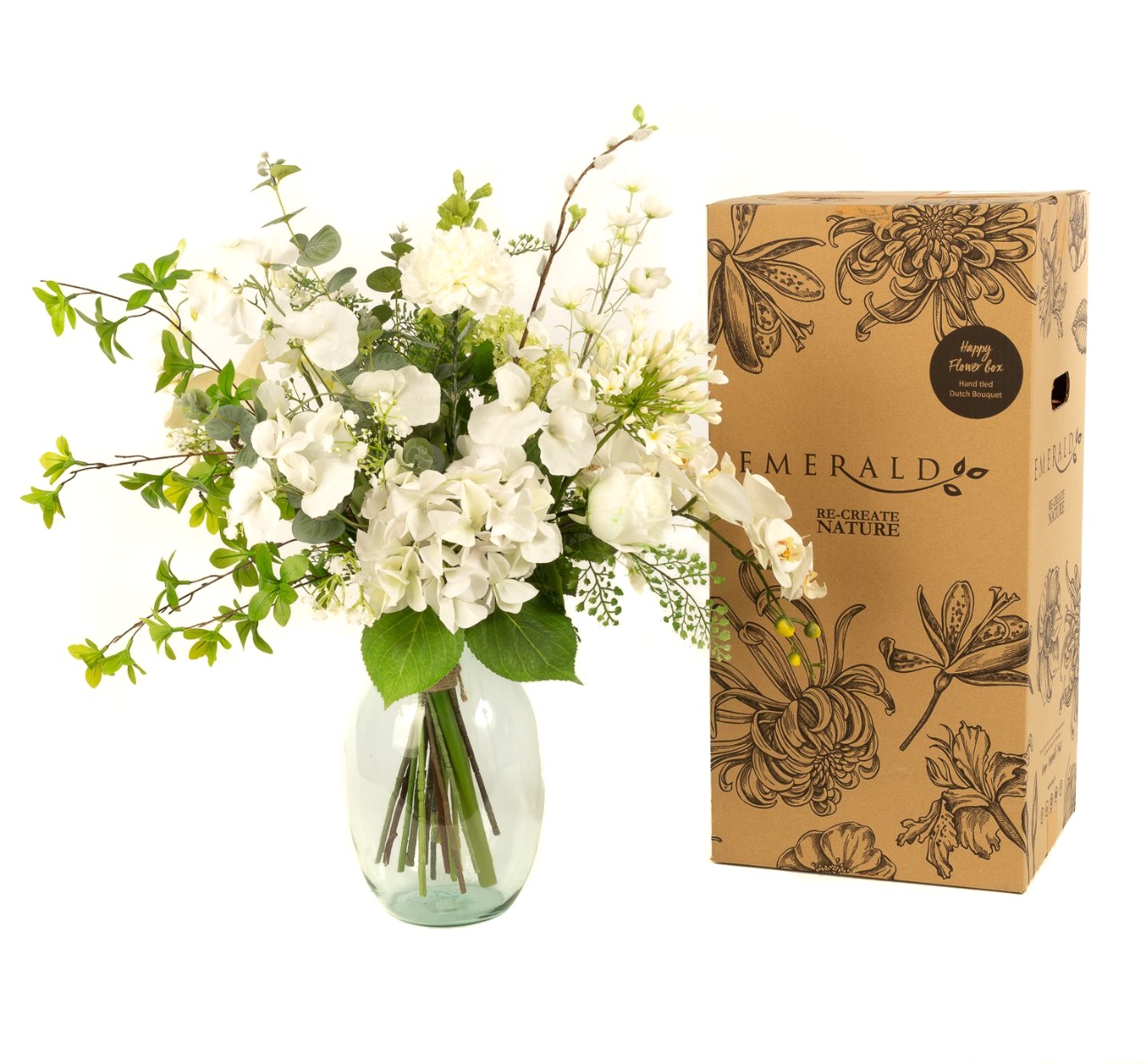 Weiß wie Schnee und Grün wie die Hoffnung. Sind die heißen Tage des Sommers überstanden, so freut sich so manche / mancher wieder auf die kalte Jahreszeit, den Schnee und die weihnachtliche Stimmung. Ein Strauß, der wie ein wunderschönes Schneegestöber wirkt, ist dafür genau richtig. Weiße Blumen wie Hortensien, Schneeball, Nelken und Orchideen erzeugen eine zauberhaft winterliche Stimmung und passen sich farblich an alles an.