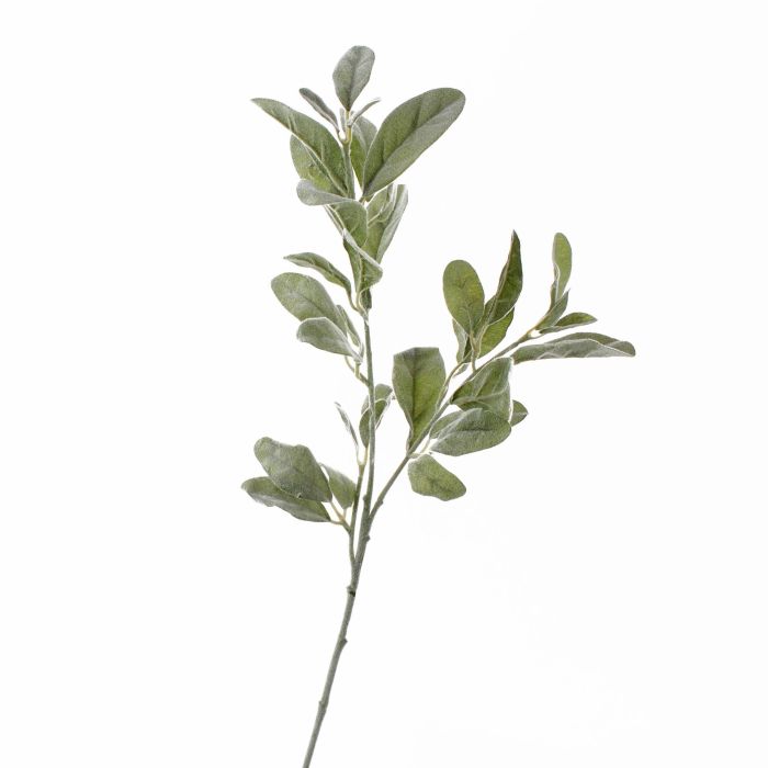 Deko Wollziest Zweig LEVIN mit ca. 34 beflockten Blättern. Der Wolliger Ziest auch Eselsohr oder Hasenohr genannt beeindruckt mit seinen silber farbigen Laubwerk.