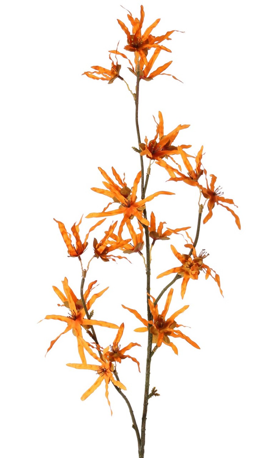 Künstlicher Zaubernuss Zweig ORAFA mit Blüten, orange, 80cm, Ø4-8cm