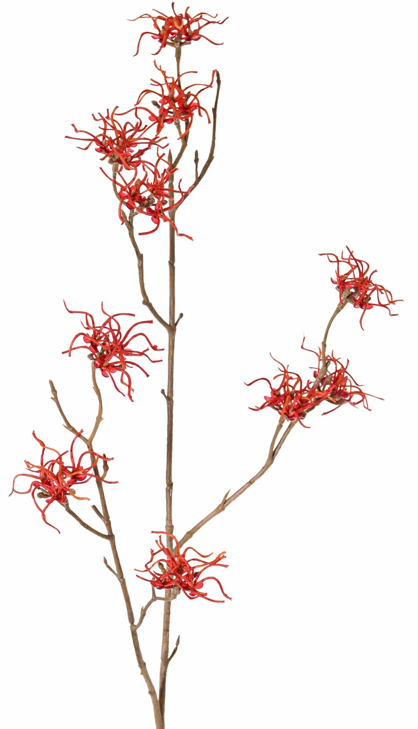 Künstlicher Zaubernuss Zweig XYLA, Blüten, orange-rot, 70cm, Ø6cm