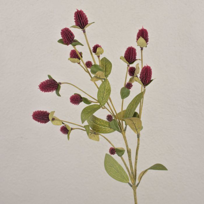 Künstlicher Zweig Kugelamarant TUSIUNE, Trockenoptik, burgunderrot, 70cm, Ø1-2,5cm