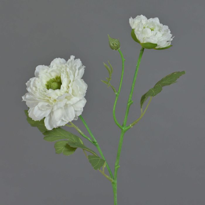 Künstlicher Zweig Ranunkel SAGARA, weiß-grün, 45cm, Ø5-9cm