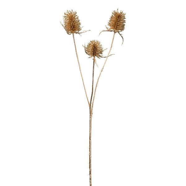 Künstlicher Zweig Wilde Karde ZILVEN mit Glitzer, gold, 65cm, 4-5cm