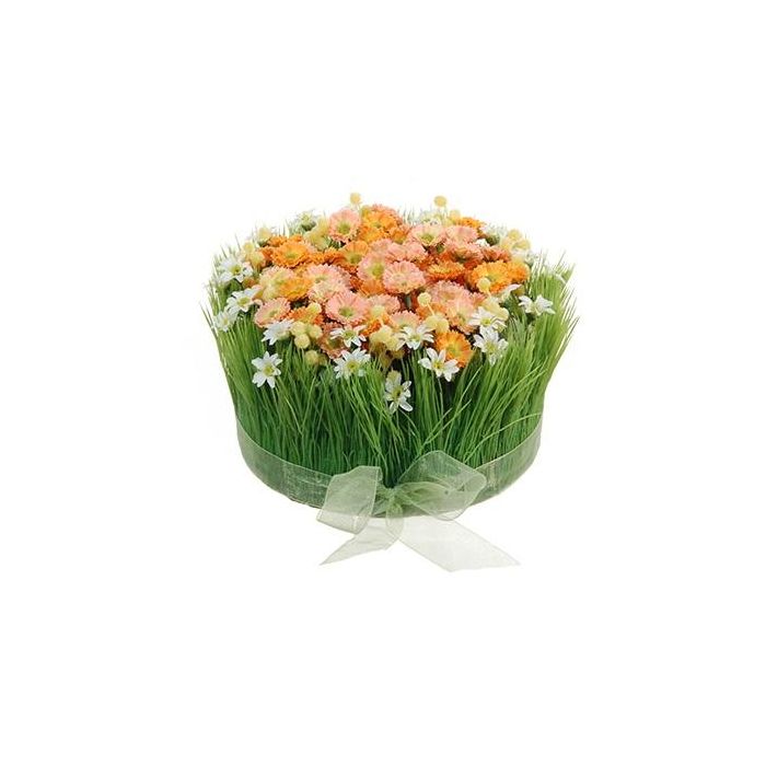 Künstliches Blumengesteck Margeriten, Gras HAULANI, orange-weiß, 12cm, Ø20cm