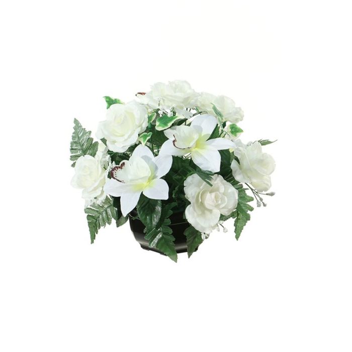 Künstliches Blumengesteck Rose, Cymbidium Orchidee YAMMA, Dekotopf, creme, 26cm, Ø27cm