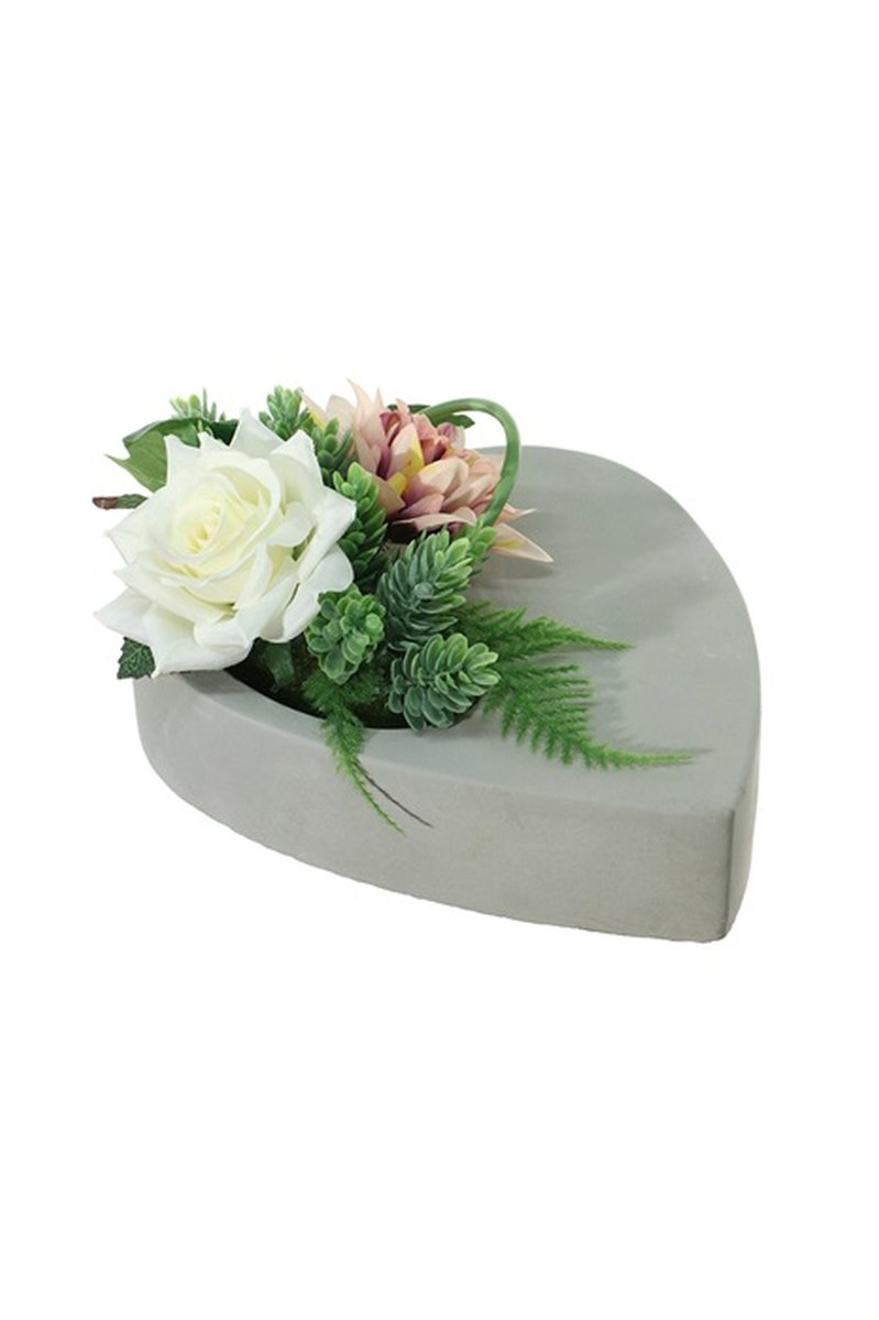 - In einem Pflanzherz (ca. 24x20x5 cm) aus Beton mit Möbelschoner zum direkten Hinstellen am gewünschten Platz