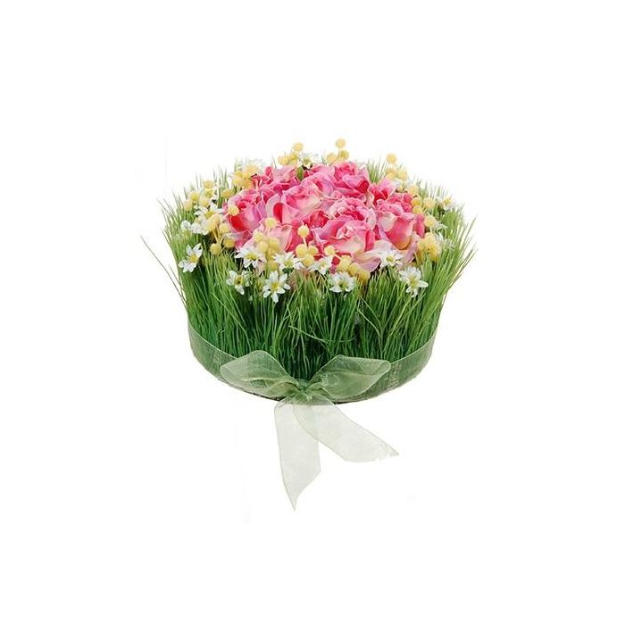 Plastik Blumengesteck Rosen, Gras HAULANI
