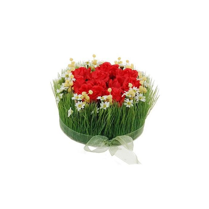 Künstliches Blumengesteck Rosen, Gras HAULANI, rot-weiß, 12cm, Ø20cm