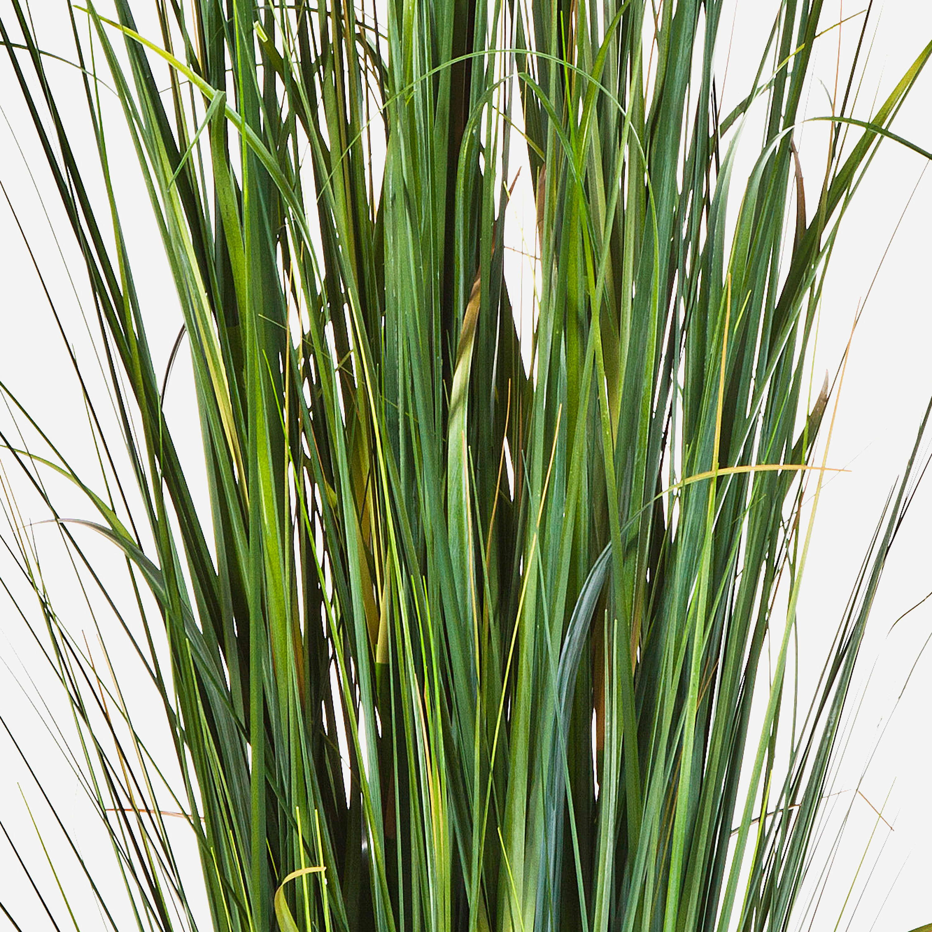 Kunstgras FEHMI erlangt seine Naturnähe durch die feinen Halme in naturgetreuen Farbtönen und die echt aussehenden Rispen in gelb mit braunen Farbschattierungen. Die Höhe des künstlichen Grasbüschels beträgt ca. 175 cm.
