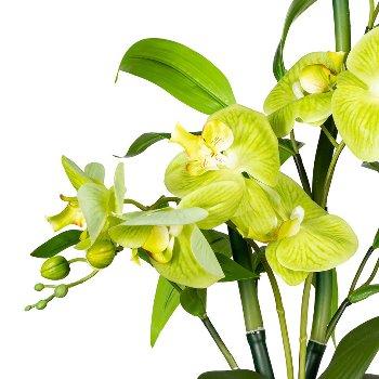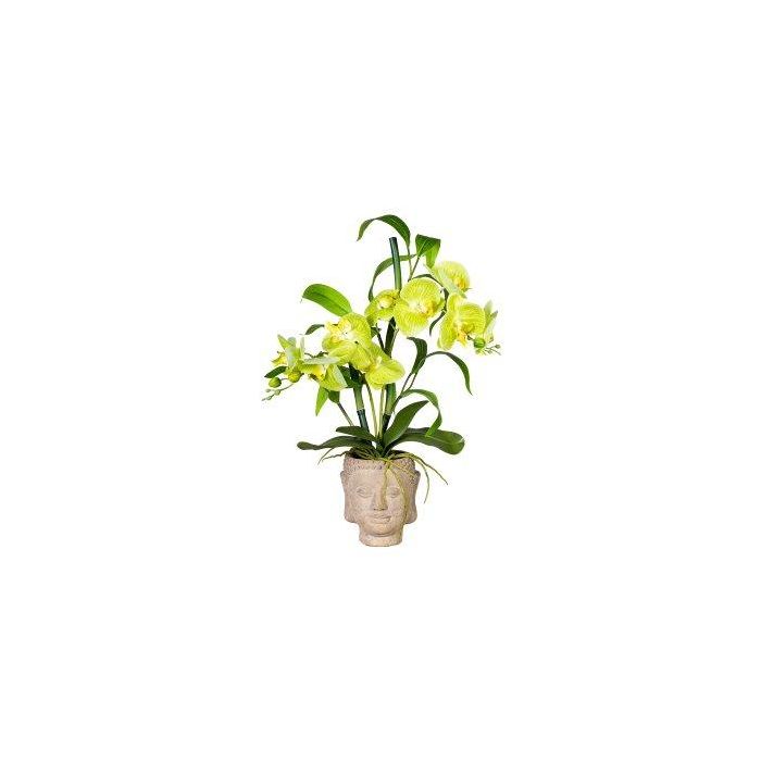 Künstliches Gesteck Orchidee Bambus MARAKI im Zementtopf Buddha, Wurzeln, hellgrün, 60cm
