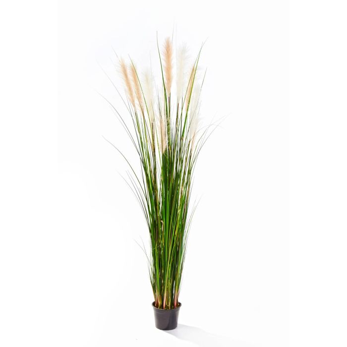 Kunst Sandrohr KILIAN ist mit seinen filigranen grünen Halmen und den feinen, beigen Rispen eine stilvolle Dekopflanze für jedermann. Die Größe des dekorativen Kunstgrases ist ca. 180 cm.