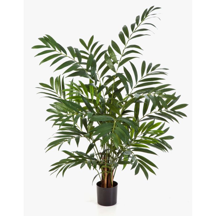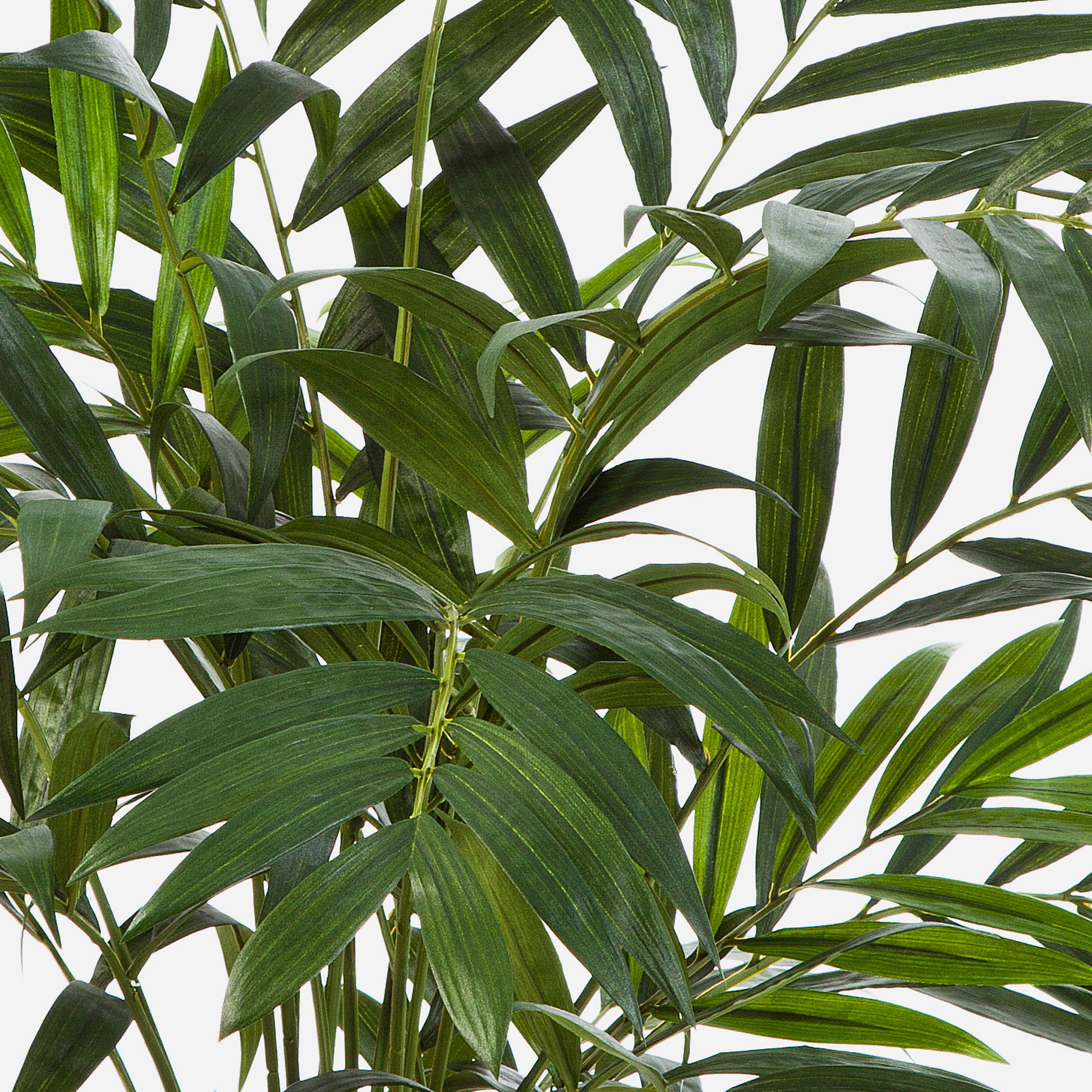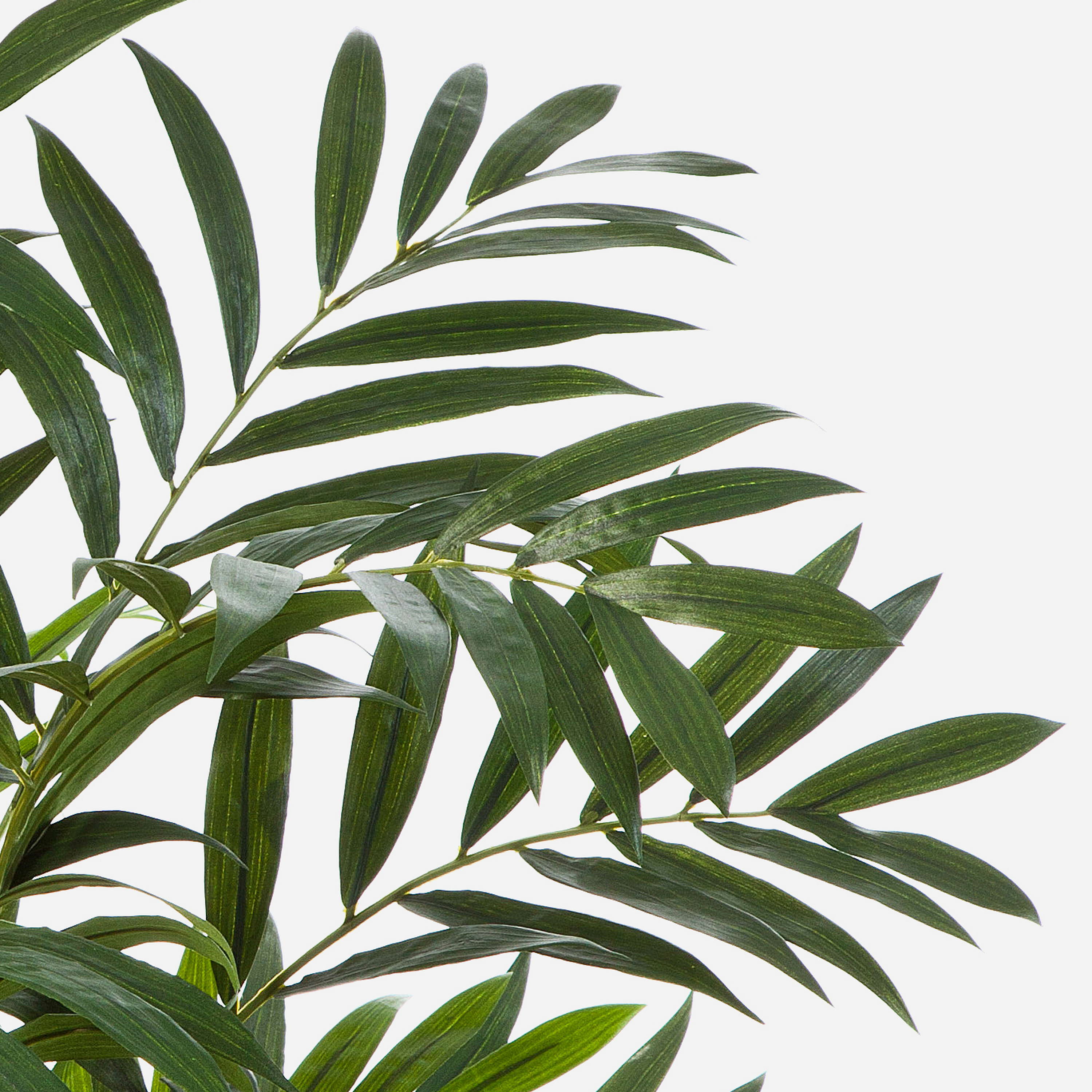 Kunstpalme DIANDRA (Chamaedorea elegans) besticht durch die Detailgenauigkeit seiner Blätter und Wedeln. Die Blätter der ca. 110 cm großen, künstlichen Zimmer-Palme erlangen durch ihre naturnahe Maserung und die natürlichen Grüntöne ein realistisches Aussehen.