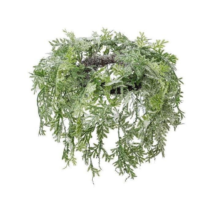 Kunst Deckenkranz Zypresse SOVLI, gefroren, weiß-grün, Ø55cm