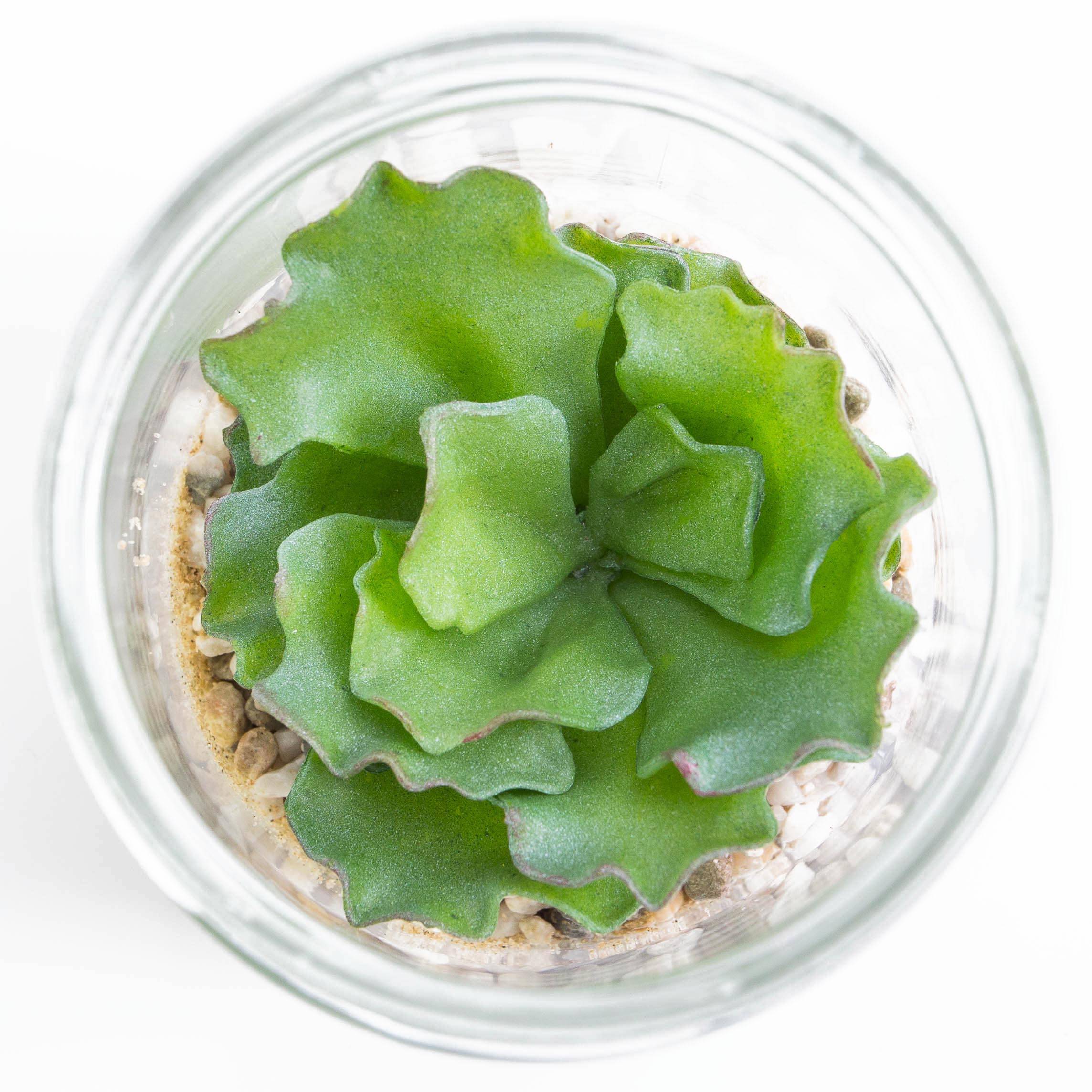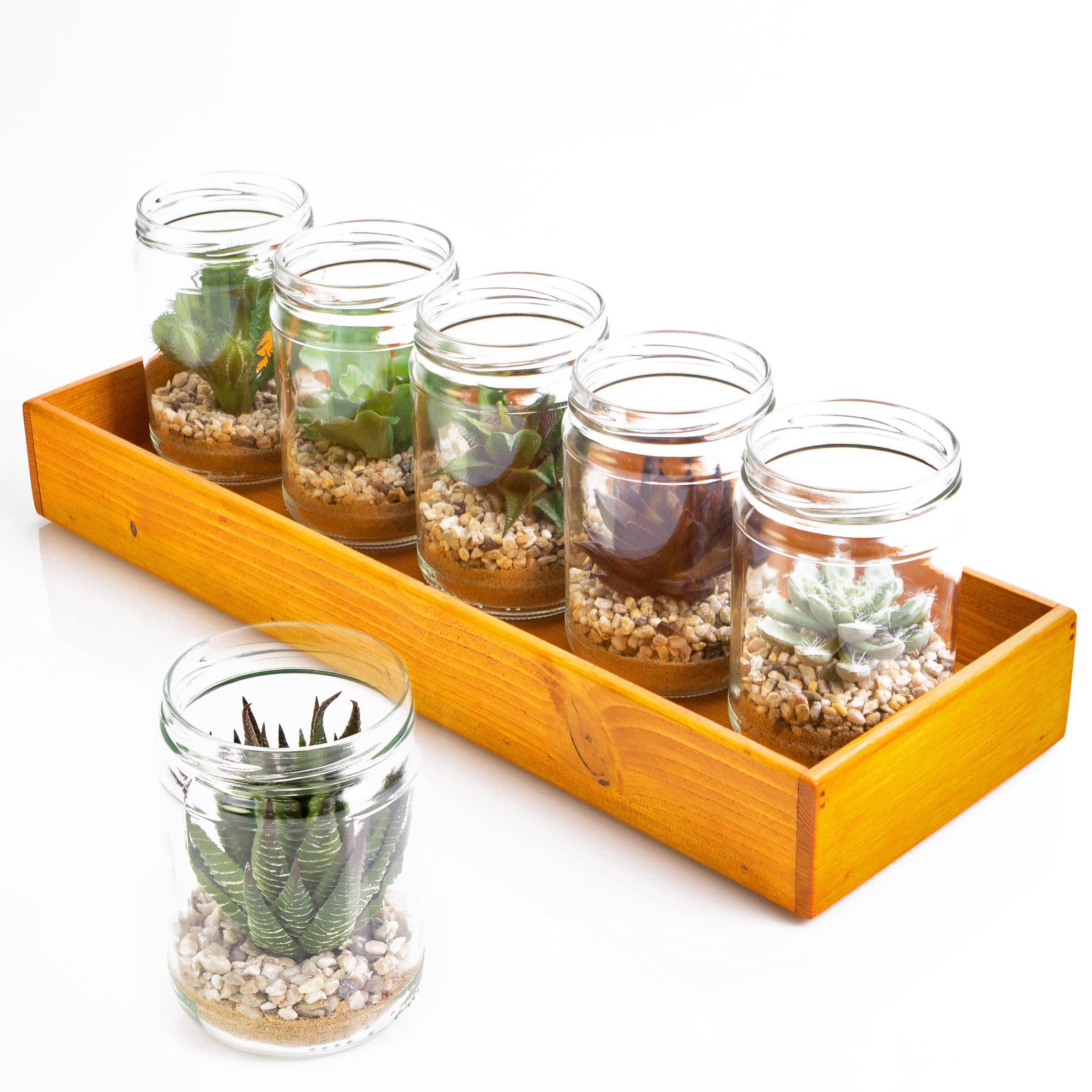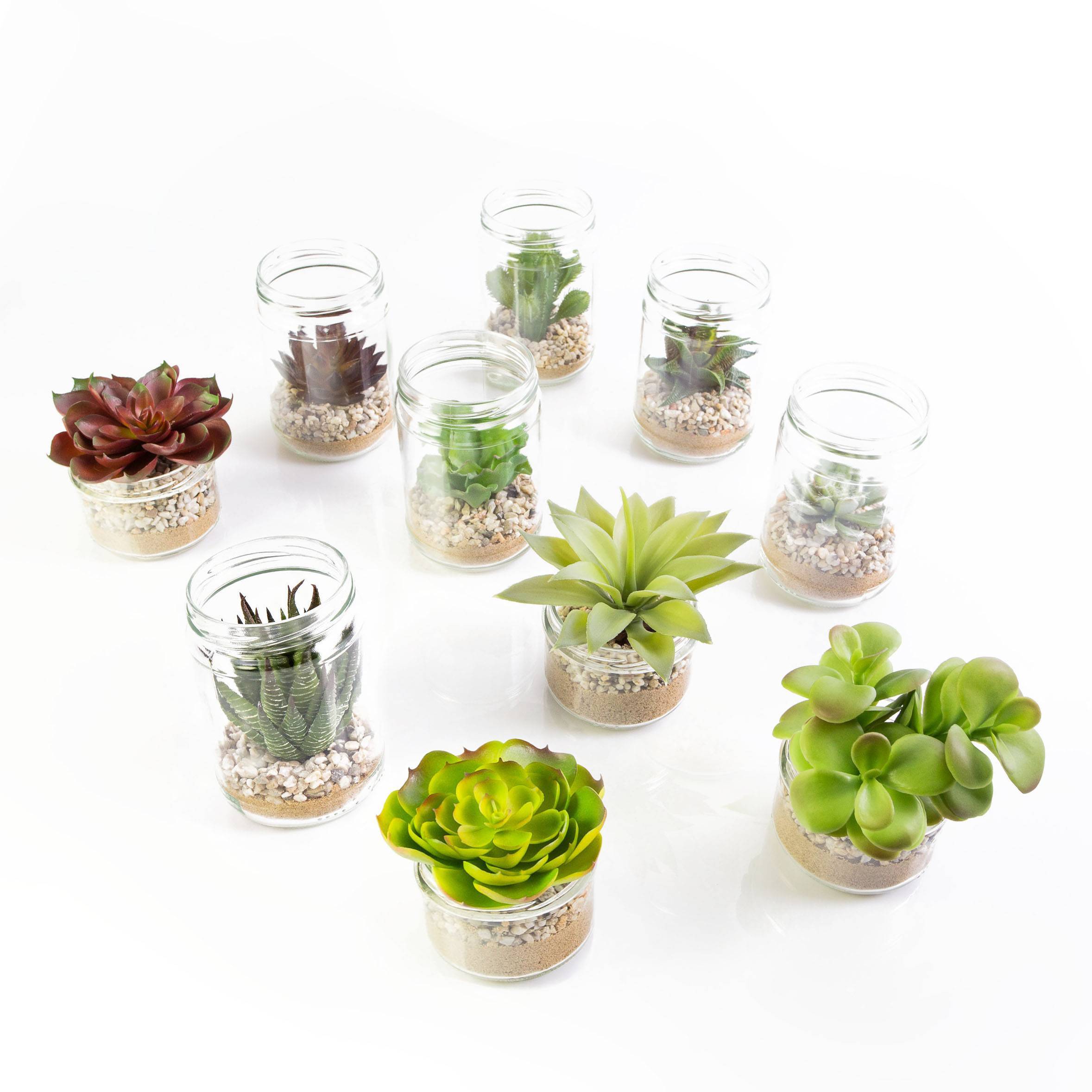 Künstliche Sukkulenten Pflanze MONICA im Marmeladenglas mit Sand und Kies