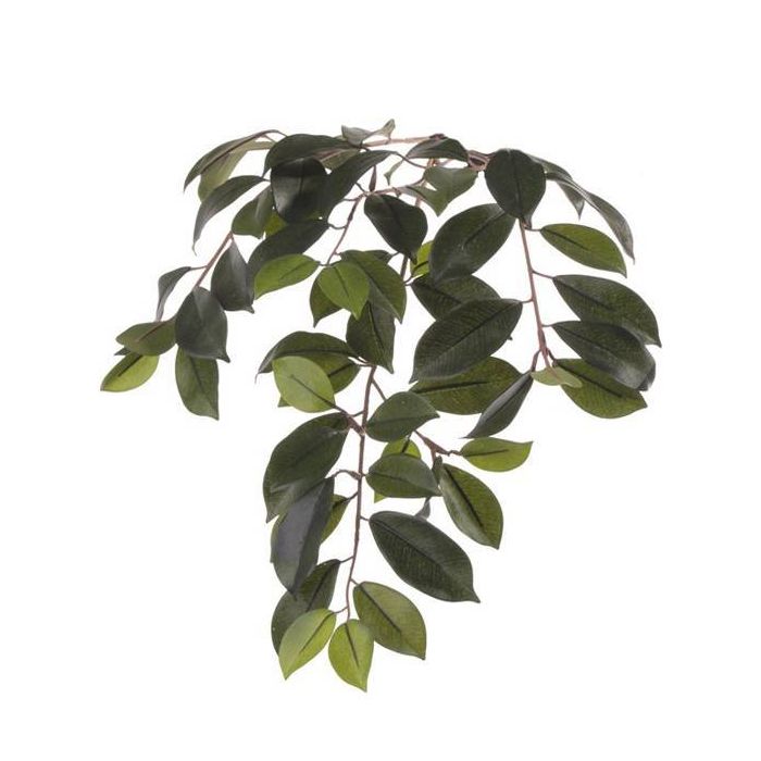Der grüne künstlicher Ficuszweig BHAO mit seinen ca. 60 Blättern und einer Größe von ca. 65 cm hat eine fein gearbeitete längliche Blattform. Er ist allseitig verwendbar, in einer Glasschale, Design Vase, Blumenkübel, Bodenvase gemischt mit anderen diversen Pflanzen-Zweigen.