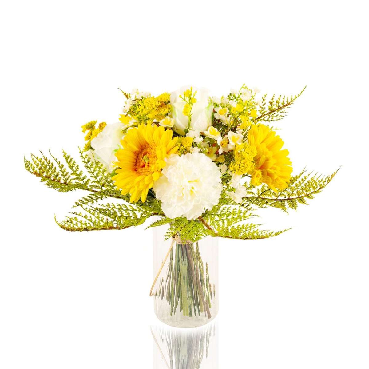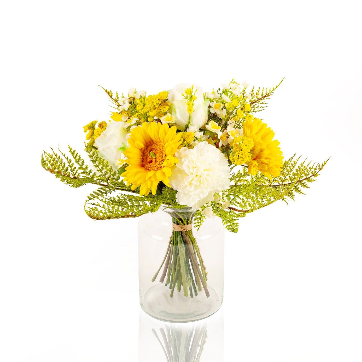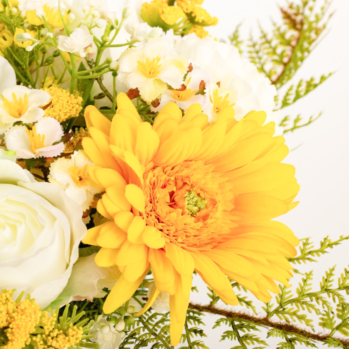 Kunst Gerbera Strauß MALIA Rose, Nelke, gelb, 40cm, Ø30cm