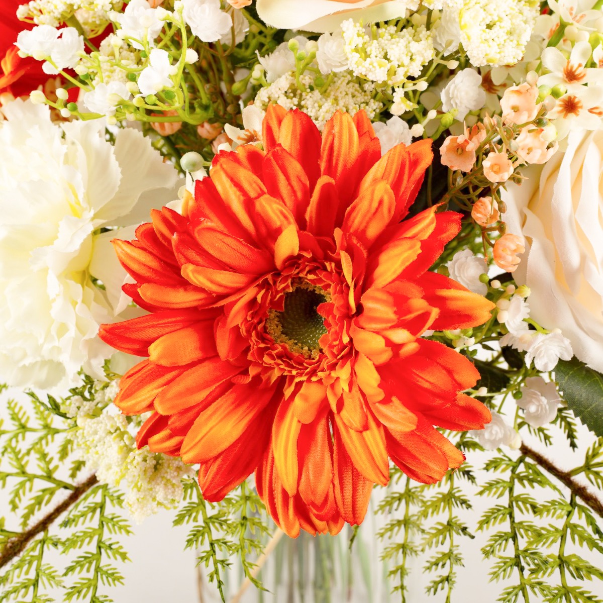 Kunst Gerbera Strauß MALIA Rose, Nelke, orange, 40cm, Ø30cm