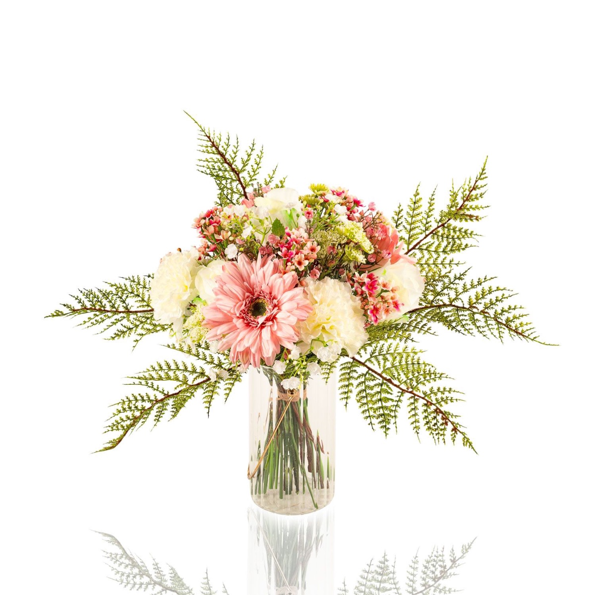 Kunst Gerbera Strauß MALIA Rose, Nelke, rosa, 40cm, Ø30cm