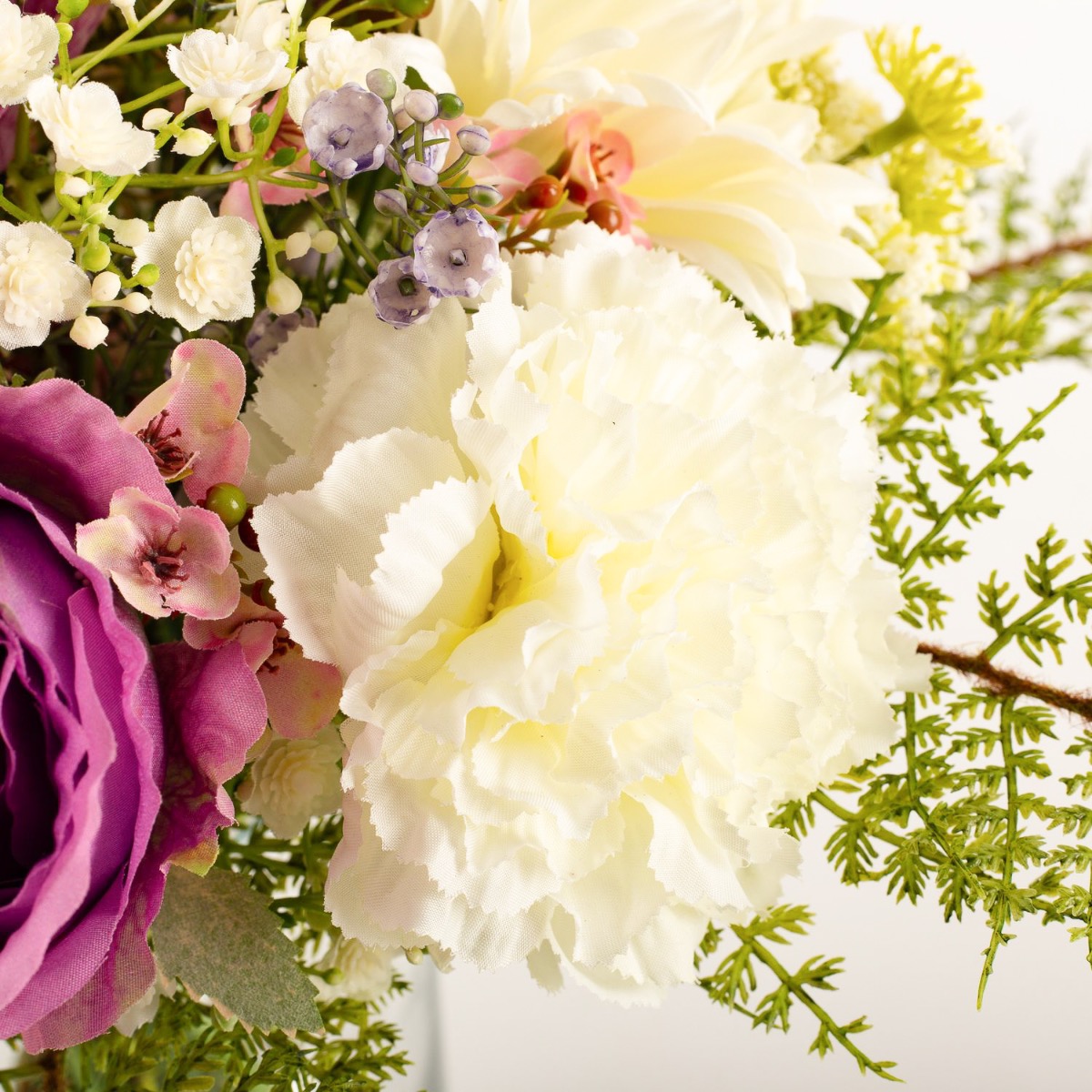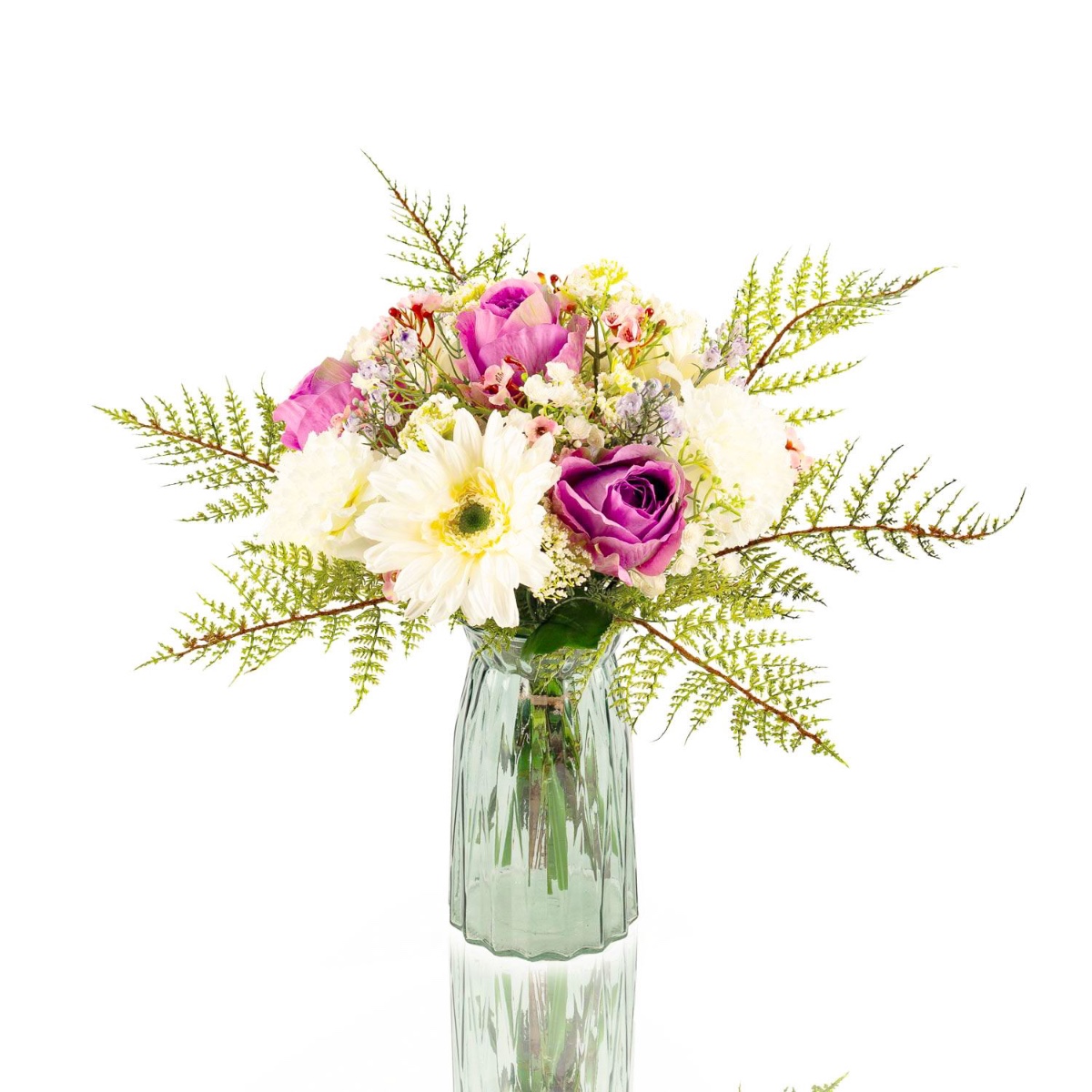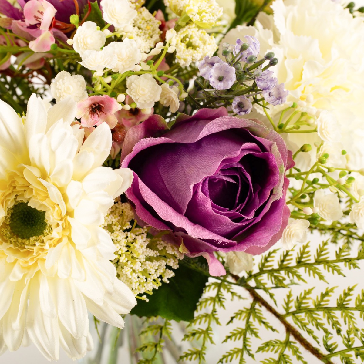 Kunst Gerbera Strauß MALIA Rose, Nelke, weiß-lila, 40cm, Ø30cm