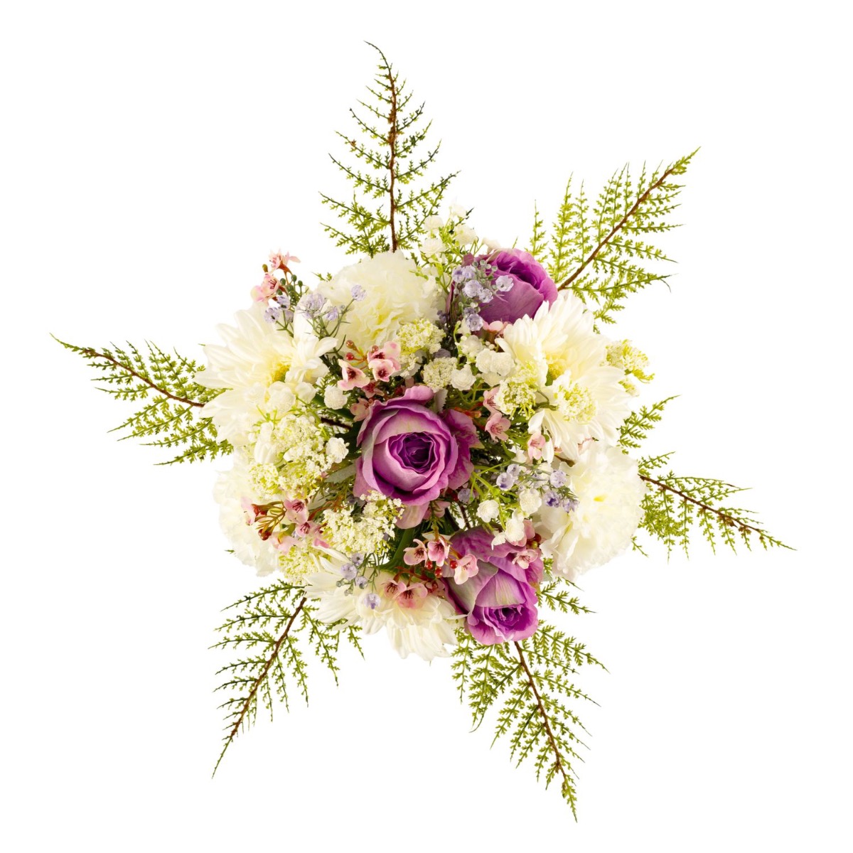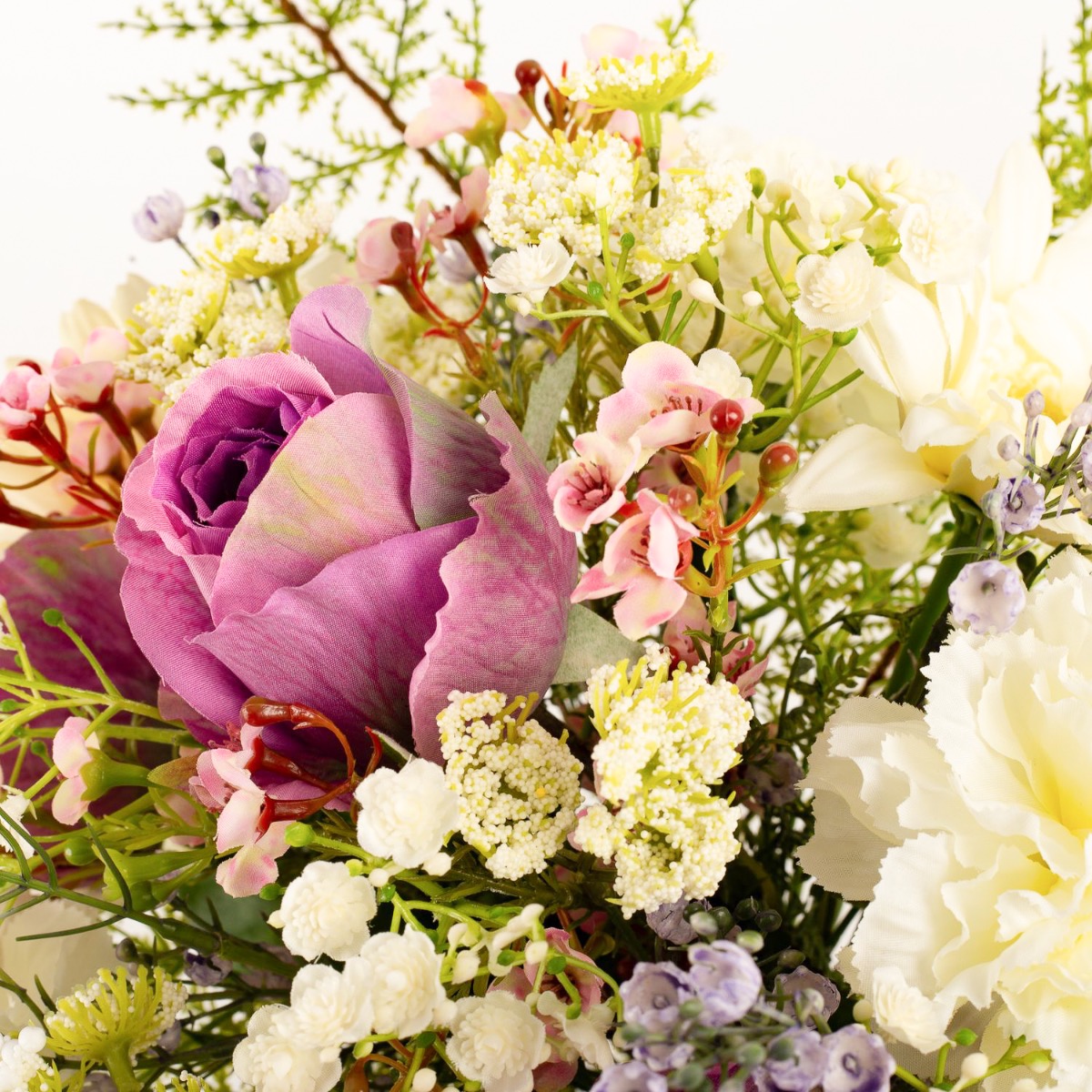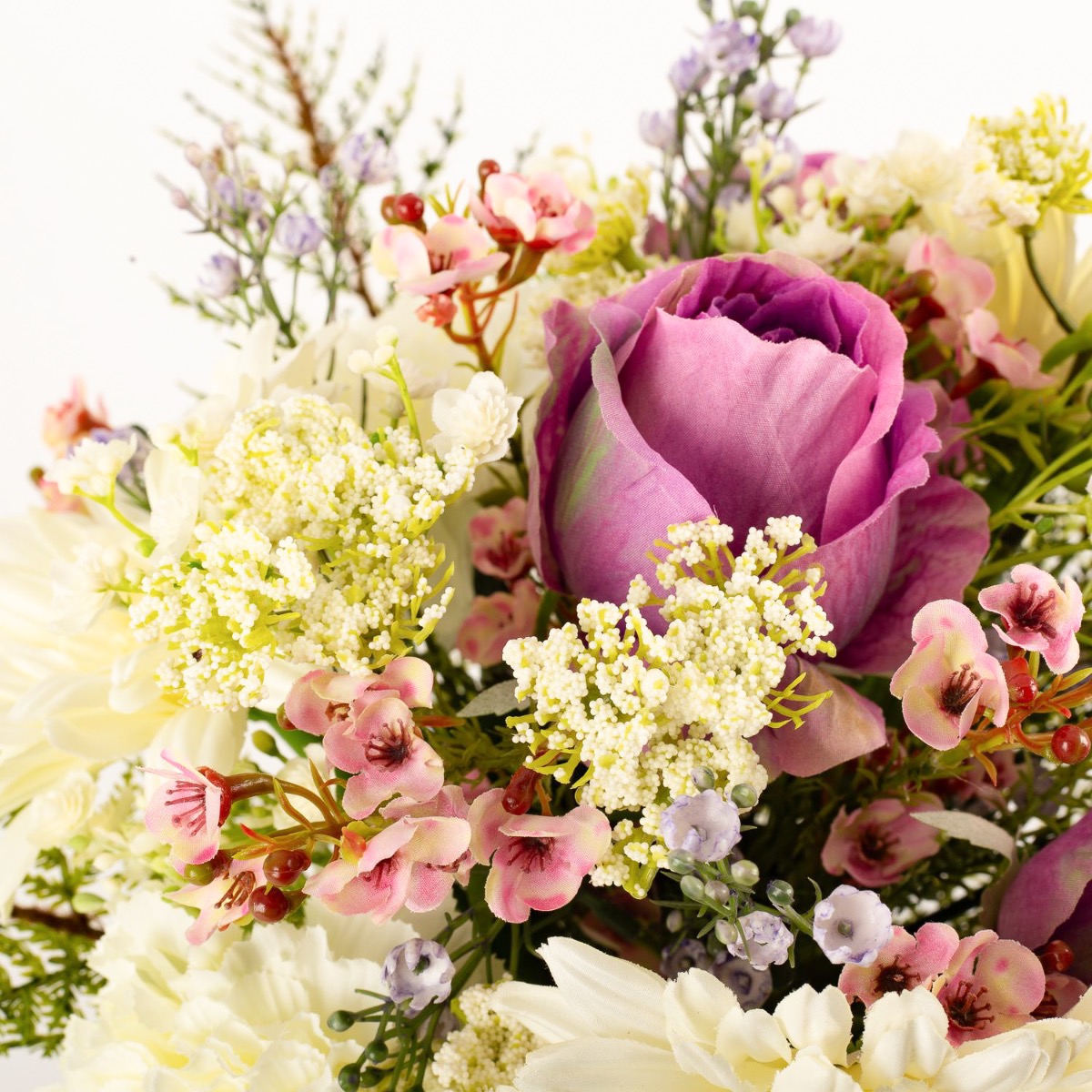 Kunst Gerbera Strauß MALIA Rose, Nelke, weiß-lila, 40cm, Ø30cm