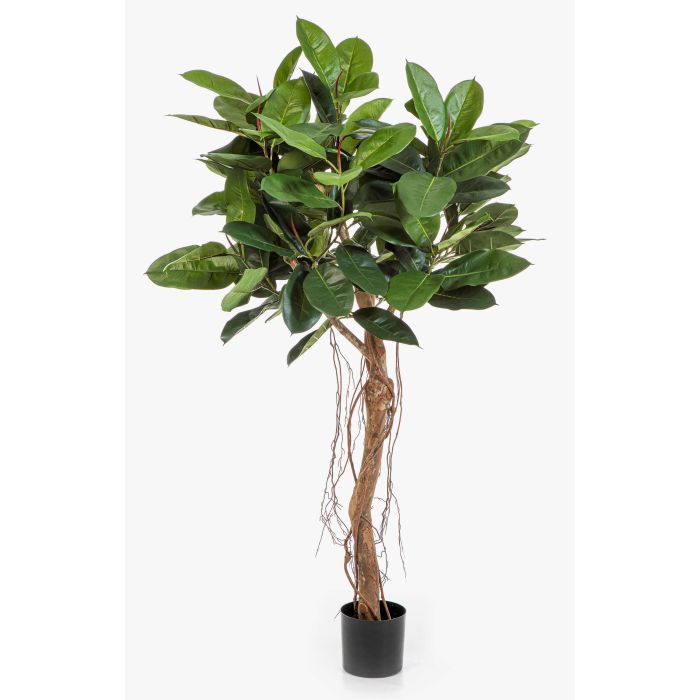 Kunstpflanze Ficus elastica ADORU mit Stamm aus echtem Holz und Lianensträngen