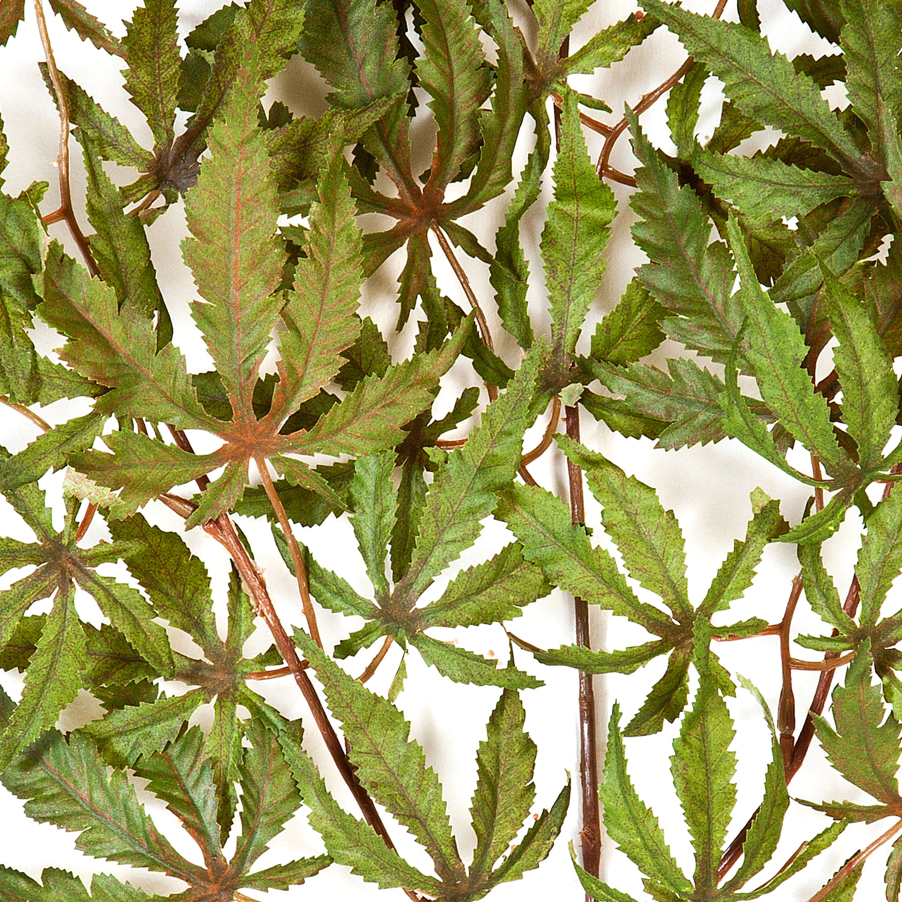 Kunststoff Ahornzweig AKAYO sticht durch die verschieden grünen Blätter mit den braunrötlichen ästen hervor. Die Ahornblätter des ca. 60 cm langen, künstlichen Zweigs haben eine feine, fransige Form.