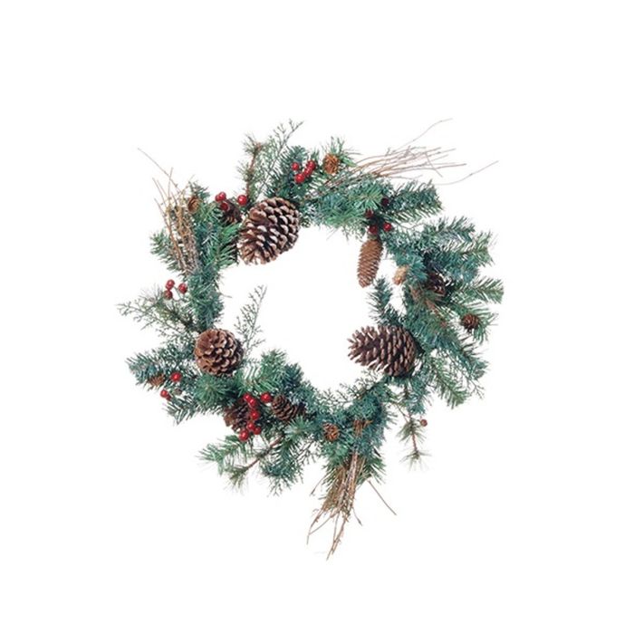Kunst Kranz Kiefer, Zeder MIRANDA, Beeren, Zapfen, beschneit, grün-rot, Ø45cm