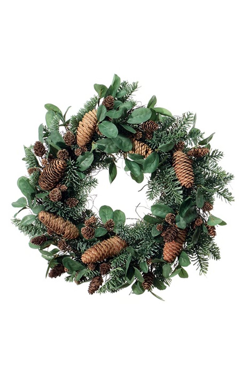 Kunst Kranz Tanne, Wollziest LIRONA mit Zapfen, grün, Ø35cm