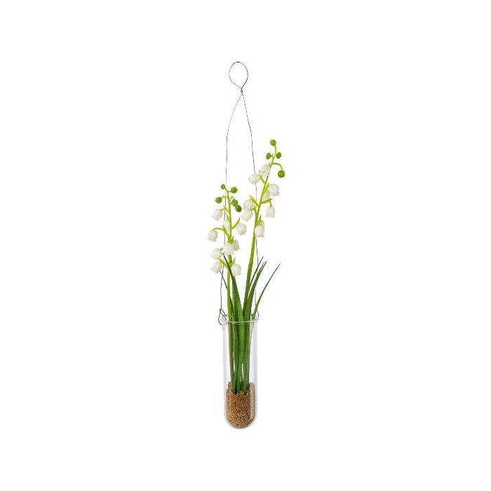 Kunst Maiglöckchen Gesteck FRUKE in Hängevase, weiß, 35cm