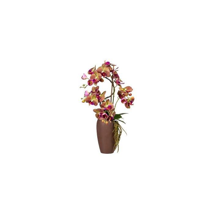 Kunst Orchidee Korkenzieherweide Gesteck RASTIA, Keramikvase, Wurzeln, pink-grün, 70cm