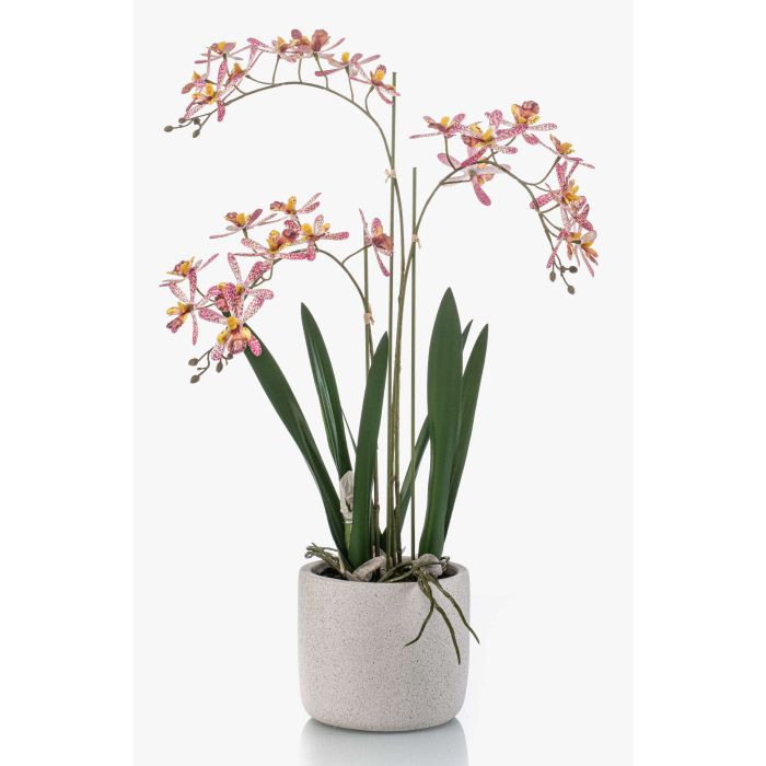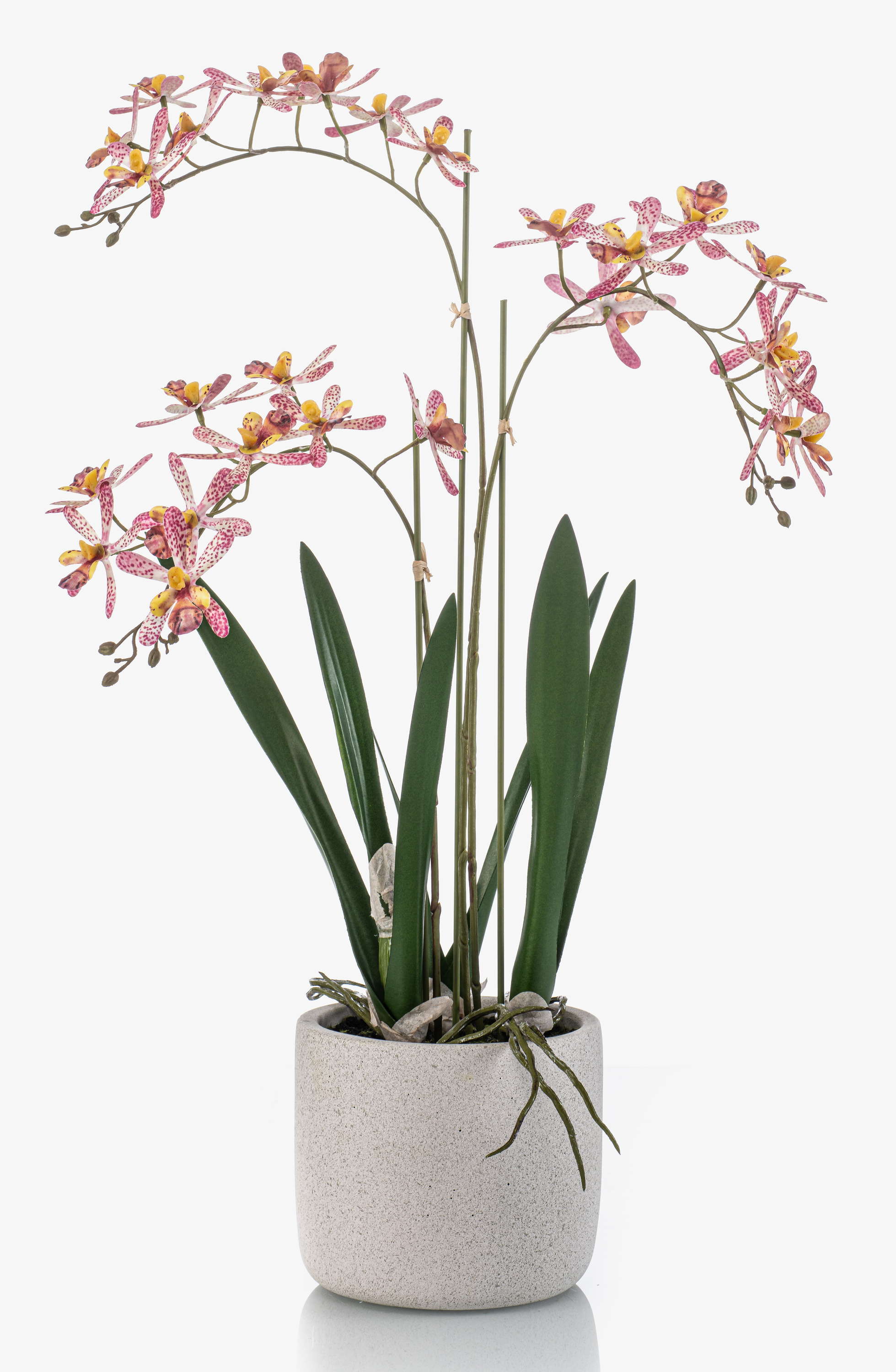 Kunst Orchidee Renanthera BLANI im Keramiktopf, Wurzeln, weiß-pink-gelb, 55cm
