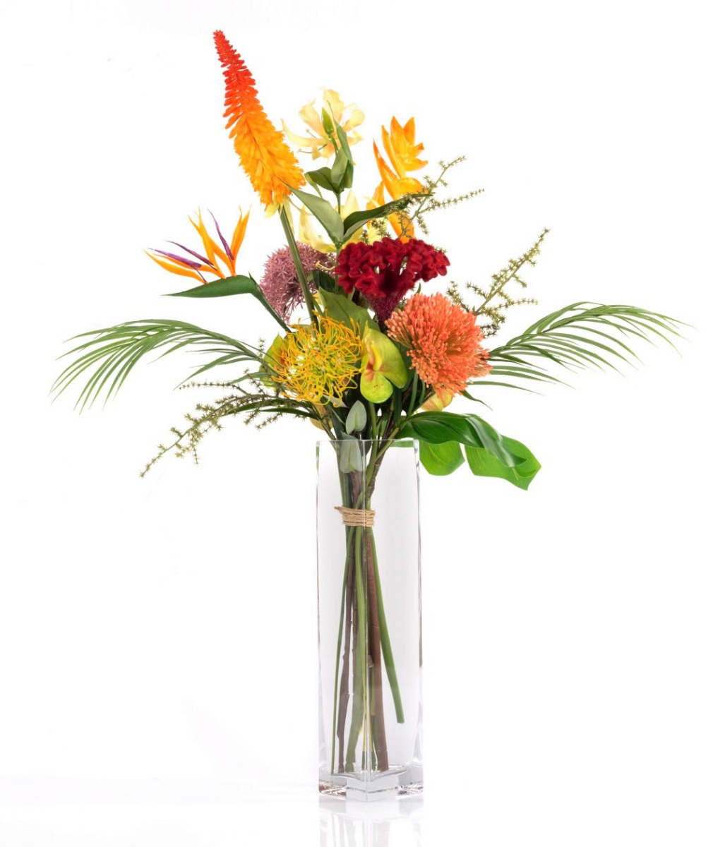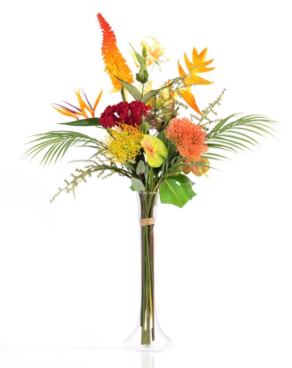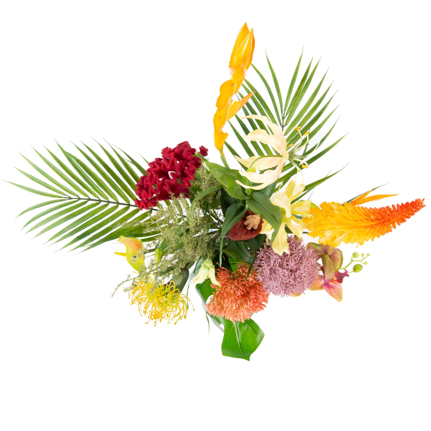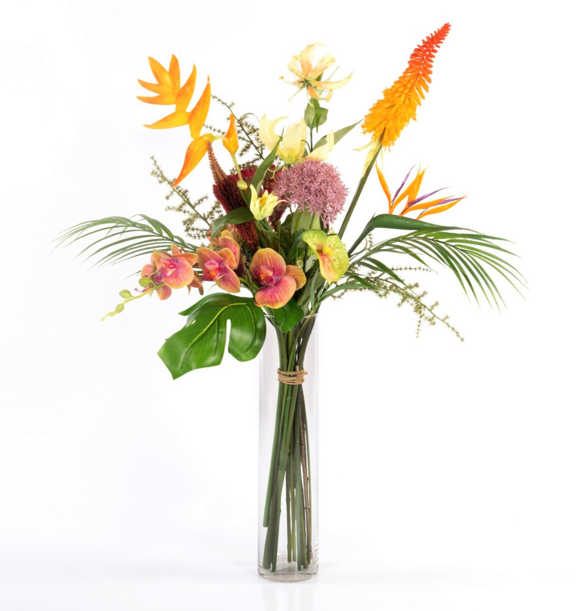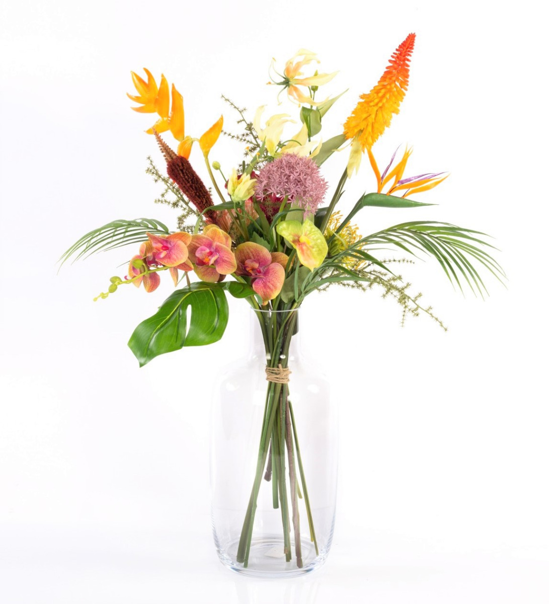 Kunst Paradiesstrauß OHANA, Orchidee, Helikonie, bunt, 85cm, Ø50cm
