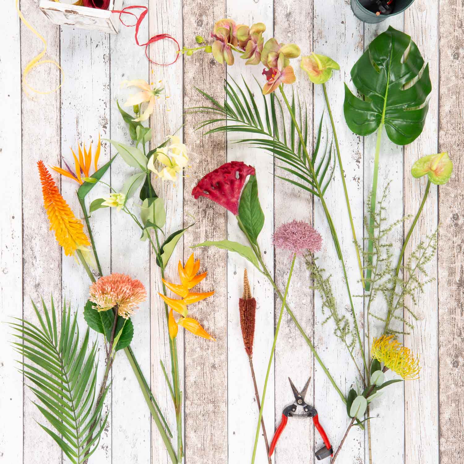 - Künstlicher Blumenstrauß OHANA bestehend aus folgenden oder mind. gleichwertigen Produkten: