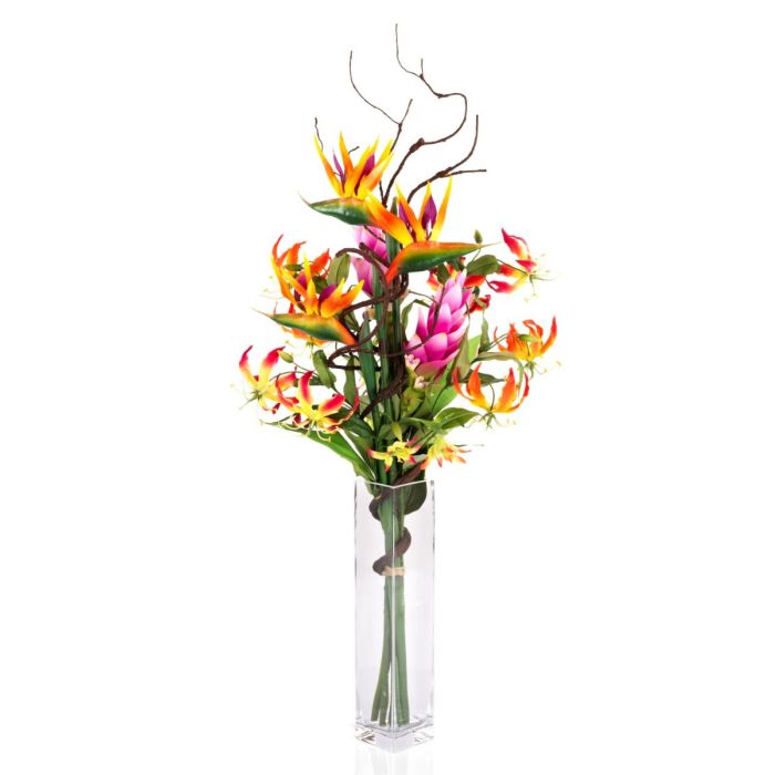 Kunst Paradiesstrauß SALOA Strelitzie Gloriosa orange, 95cm, Ø35cm