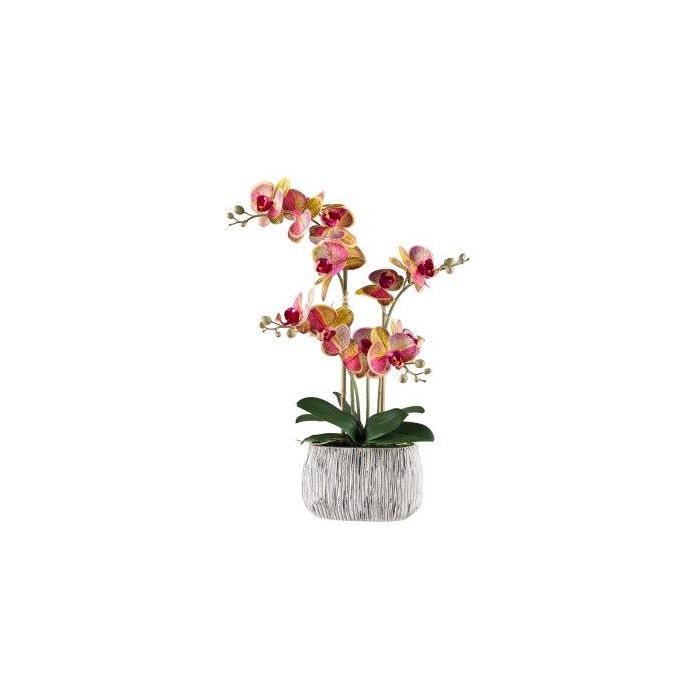 Kunst Phalaenopsis Orchidee BLORVEN, Zementschale, Wurzeln, gelb-pink, 55cm