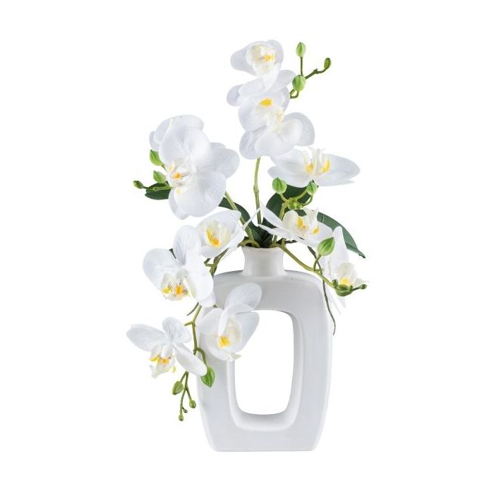 Kunst Phalaenopsis Orchidee DRUKLON, Keramikvase, Wurzeln, weiß, 40cm