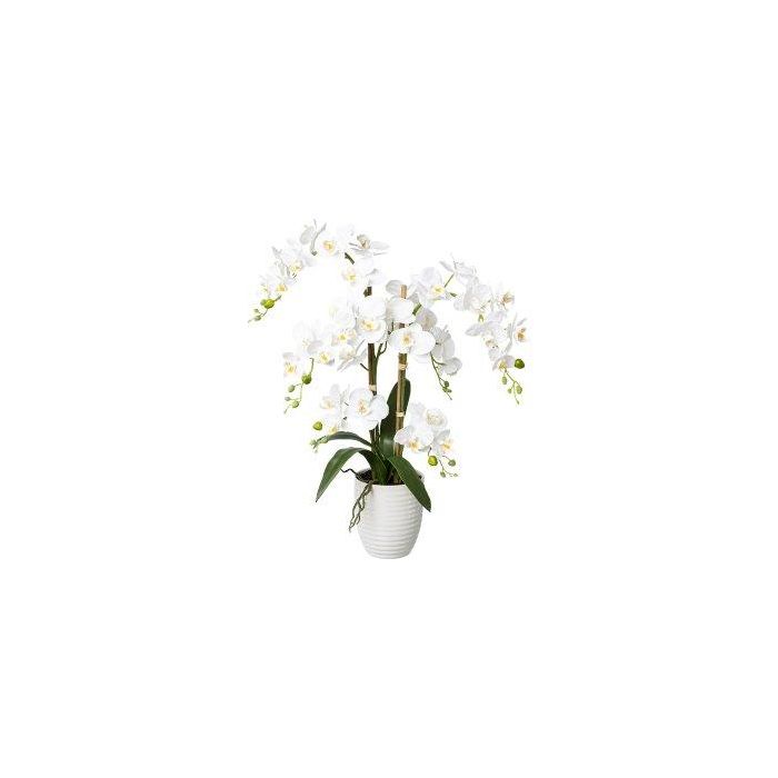 Kunst Phalaenopsis Orchidee LUKREN im Keramiktopf, Wurzeln, weiß, 65cm