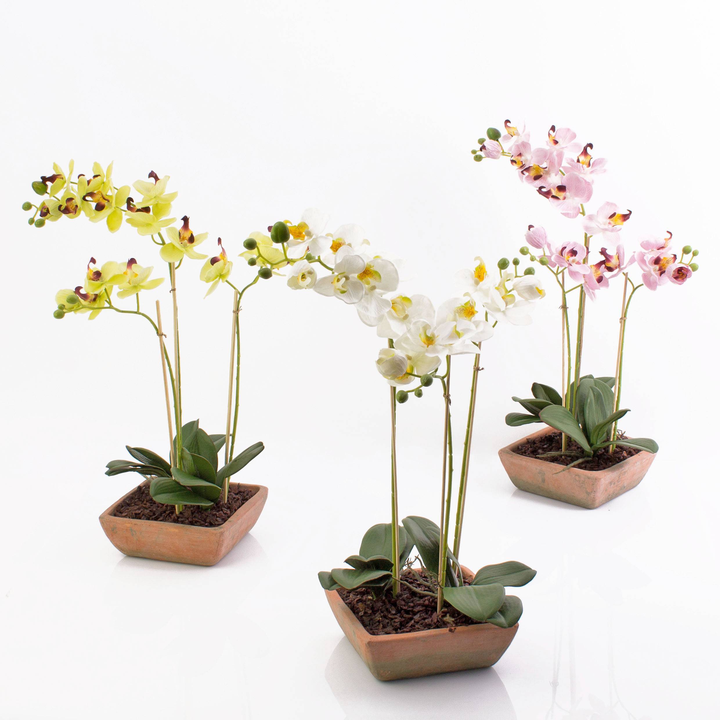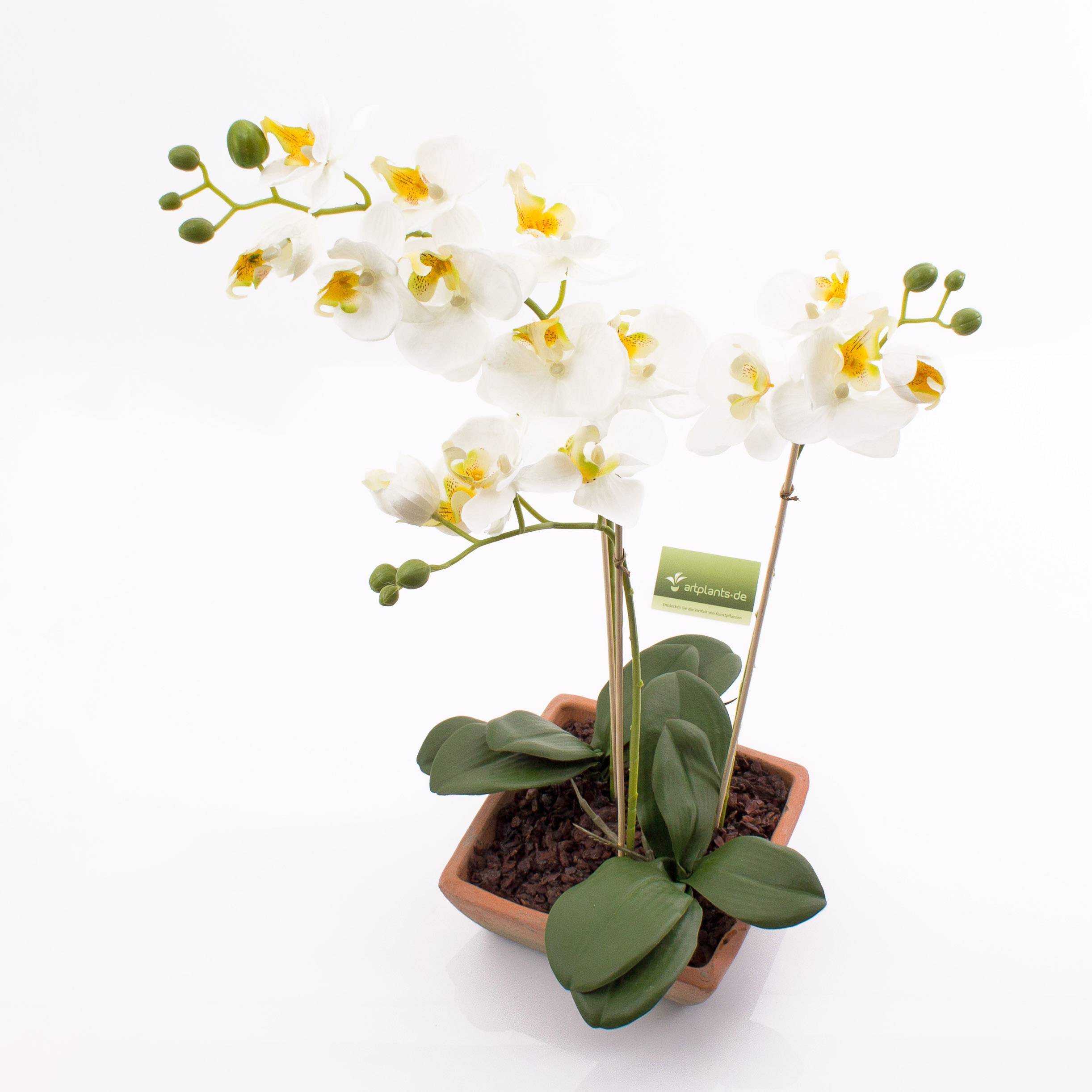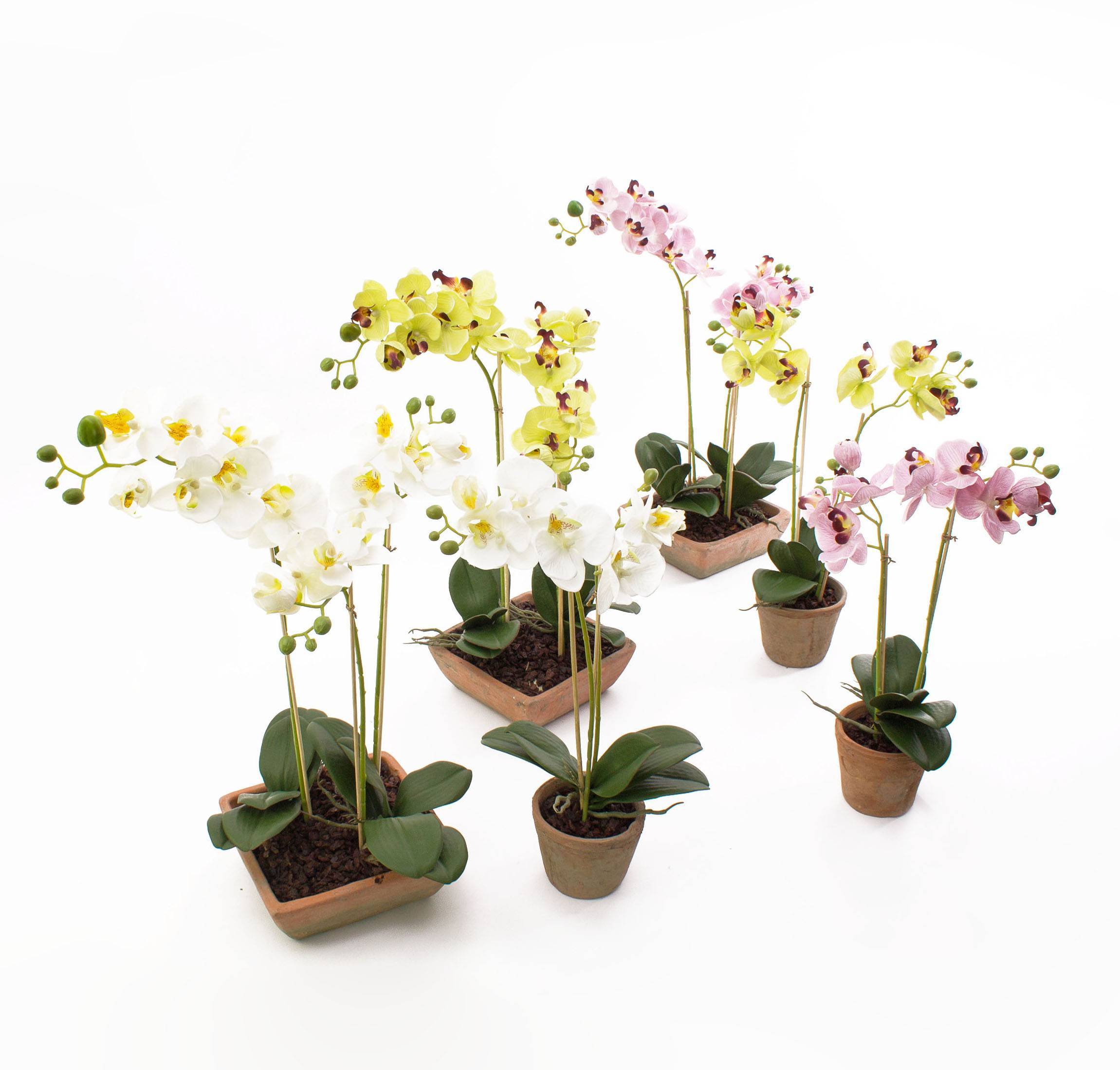 Kunst Phalaenopsis Orchidee MINA im Terracotta Topf, weiß, 55cm