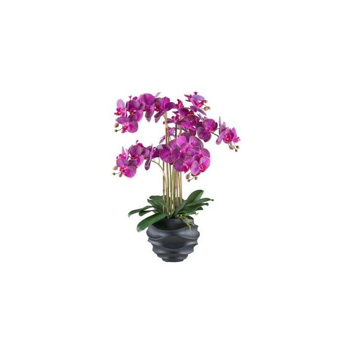 Kunst Phalaenopsis Orchidee STONFER, Dekotopf schwarz, Wurzeln, lila, 70cm