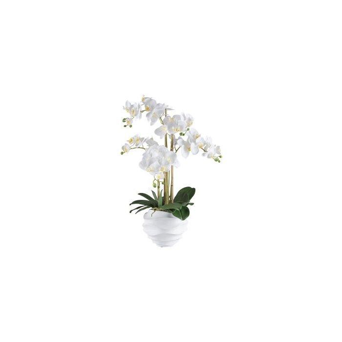 Kunst Phalaenopsis Orchidee STONFER, Dekotopf weiß, Wurzeln, weiß, 70cm
