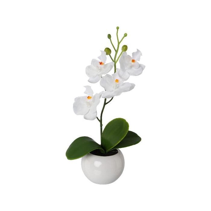 Kunst Phalaenopsis Orchidee WOPRIN im Keramiktopf, weiß, 21cm