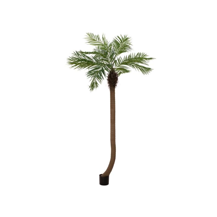 Die unechte Palme MANJANA hat eine beachtliche Höhe von ca. 240 cm und einen imposanten gebogenen Stamm. Aufgrund ihrer Höhe kommt die Palme besonders gut zur Geltung in großen Hallen oder Räumlichkeiten, wie etwa auf Messen, in Einkaufszentren, Thermen oder auch bei Ihnen Zuhause z. B. in einer Galerie, uvm.
