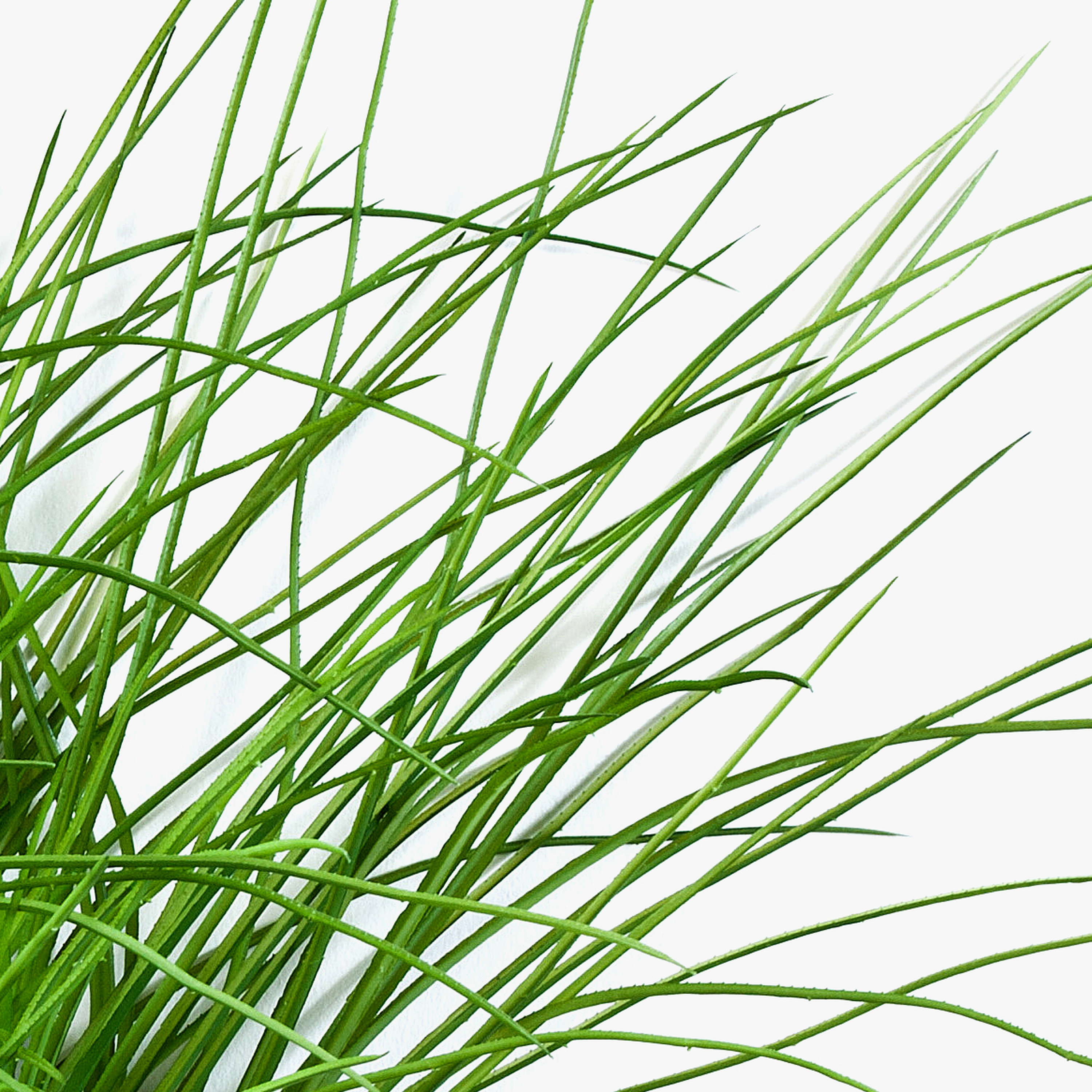 Das künstliche Gras ELIAS hat viele verschieden große herunterhängende Halme in der Farbe Grün. Das Kunstgras ist insgesamt ca. 55 cm hoch, auf einem Steckstab befestigt und schmückt in einer Blumenvase jeden Esstisch.