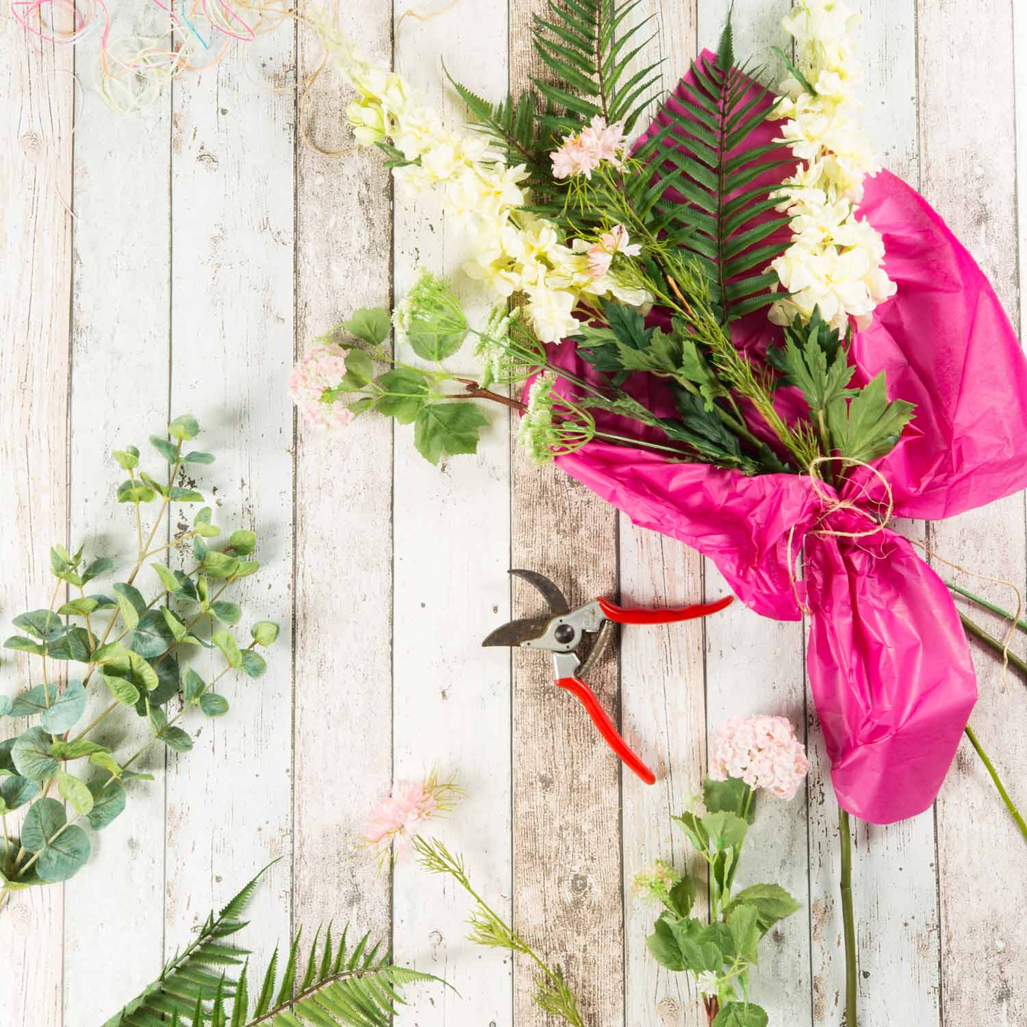 - Zusammengebunden mit einer Sisalschnur, die Blumen und Zweige können individuell gekürzt werden bzw. nach entfernen der Schnur auch einzeln für kreative Projekte verwendet werden