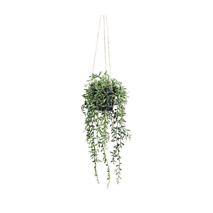 Kunst Sukkulente Senecio Blumenampel GRISTY im Dekotopf, hängend, grün, 55cm