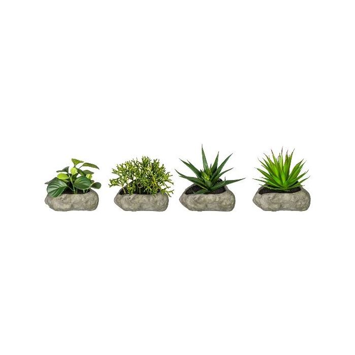 Kunst Sukkulenten Gesteck TASTIKE im Polyresin Steintopf, 4 Stück, grün, 12-15cm