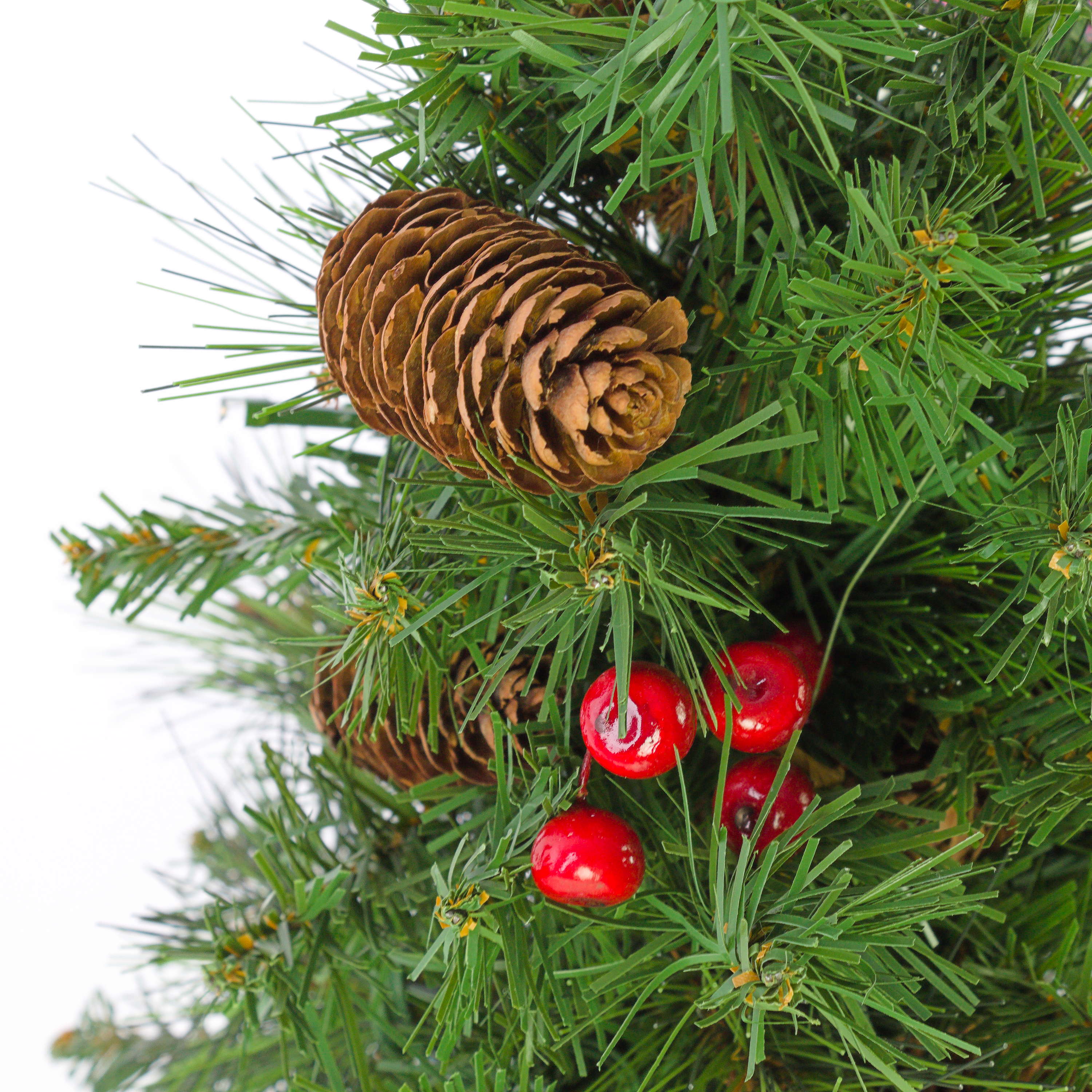 - Ca. 75 biegbare Kunstzweige in grüner Farbe, geschmückt mit roten Johannisbeeren, Tannenzapfen und 15 Lichtern