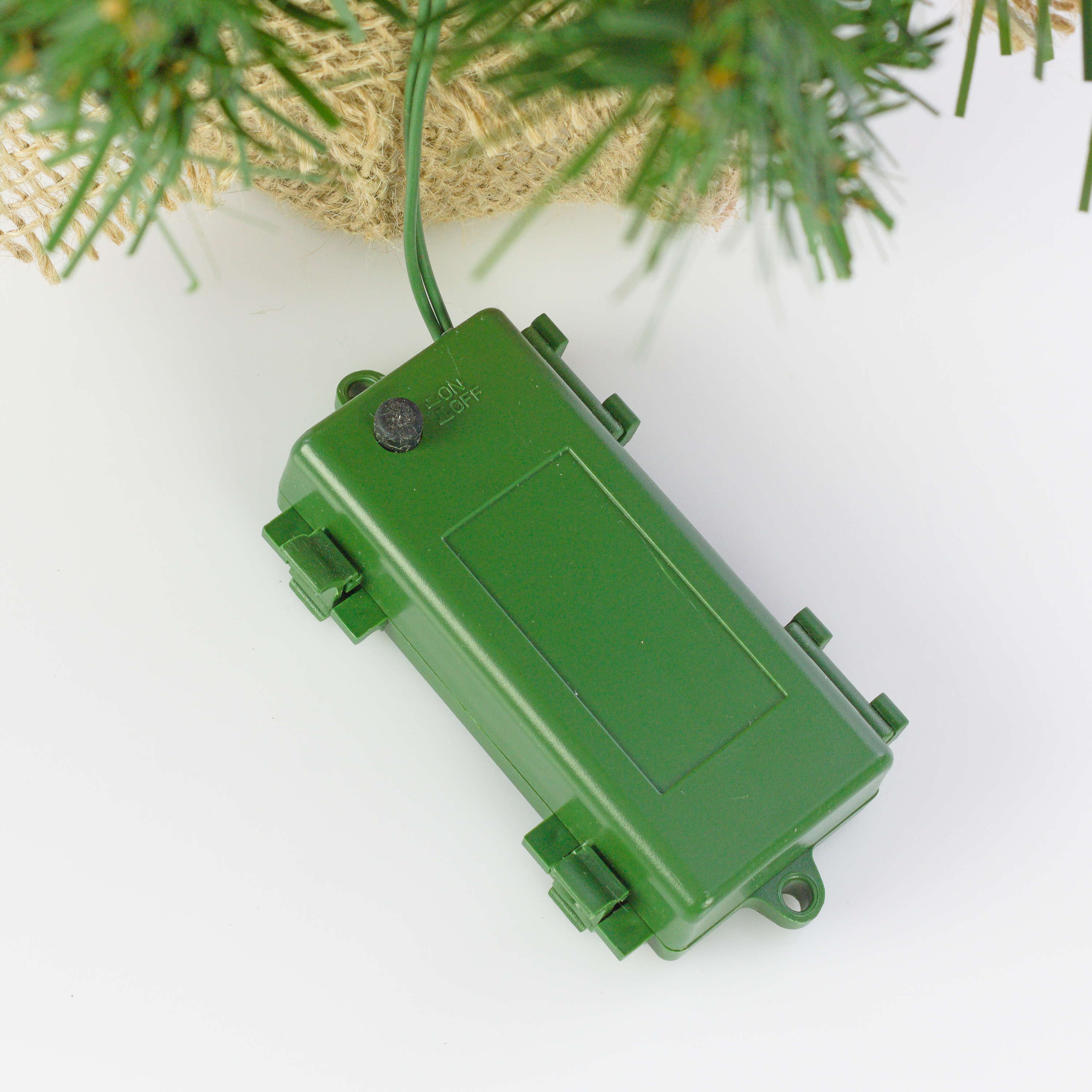 Kunst Tanne BUKAREST, Jutesack, geschmückt, LEDs, 45cm, Ø25cm