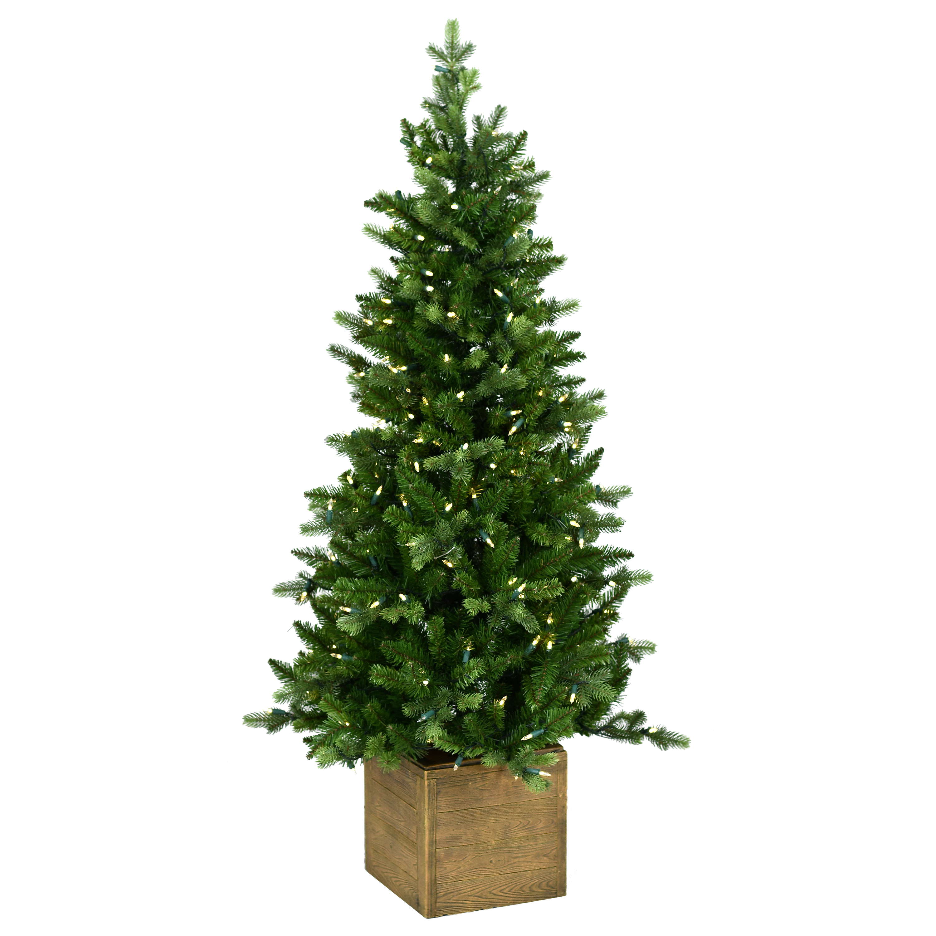 Künstliche Tanne/Christbaum OMAHA in Farbe grün mit Deko Holzkasten besteht aus PE/PVC Nadeln. Der ca. 135 cm hohe X-Mas Tanne hat einen Durchmesser von ca. 65 cm und eignet sich als Deko für das heimische Wohnzimmer oder für Restaurants, Schaufenster, Messestände, usw.